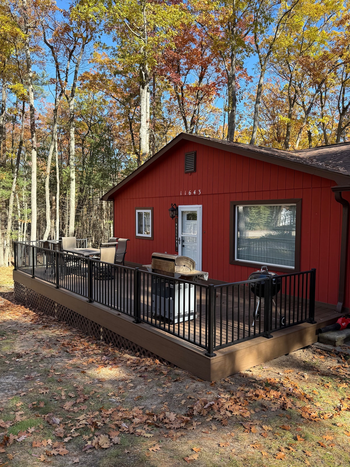 Cábán gleoite ar acra talún timpeallaithe ag crainn agus ag tacú leis an bhForaois Náisiúnta. San áireamh, ach gan ach nóiméad ó ghníomhaíochtaí lasmuigh gan deireadh de Thuaisceart Michigan lena n - áirítear curachóireacht/cadhcáil, Higgins agus Lochanna Houghton, cosáin ORV/snowmobile, sciáil trastíre, galf, fánaíocht, fiach agus iascaireacht. Tairgeann tiomáint cúig nóiméad go lár Ros Comáin roghanna éagsúla dinnéir agus/nó dí, siopa grósaera, babhláil, zú agus siopaí. Cuirtear fáilte roimh pheataí nuair a nochtar iad ag an áirithint. Cloigín dorais amach chun tosaigh.