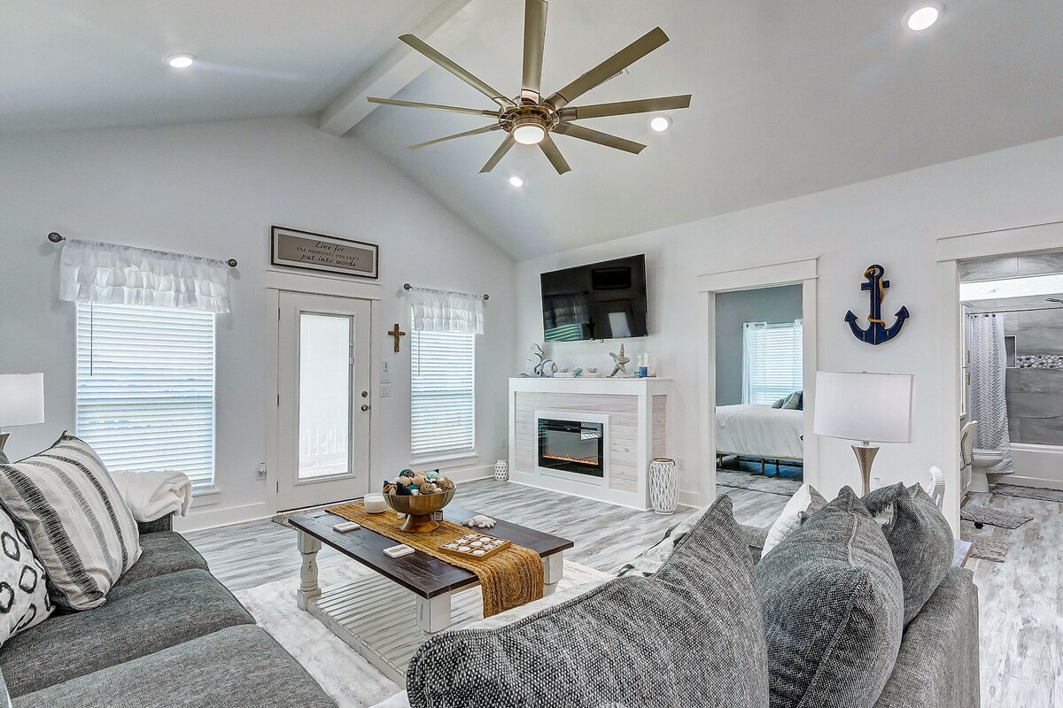Lig do scíth leis an teaghlach ar fad ag an áit shuaimhneach seo le fanacht. Siúlóid 8 nóiméad chuig an trá nó tiomáint ar aghaidh go dtí an trá más fearr leat. Dearadh uathúil le deiceanna ar roinnt scéalta chun crochadh thart agus do scíth a ligean. Tobán ar maos sa phríomhsheomra folctha don nóiméad Calgon sin. 1200 troigh cearnach, teach folctha 2 leaba/2b. In aice leis an siopa agus na bialanna áitiúla. Tá an chistin go léir is gá duit chun cócaireacht suas le stoirm. Cabhsa mór le seomra le páirceáil faoin teach. Hookup RV le 30 amp leictreach, uisce, agus hookups séarachais.
