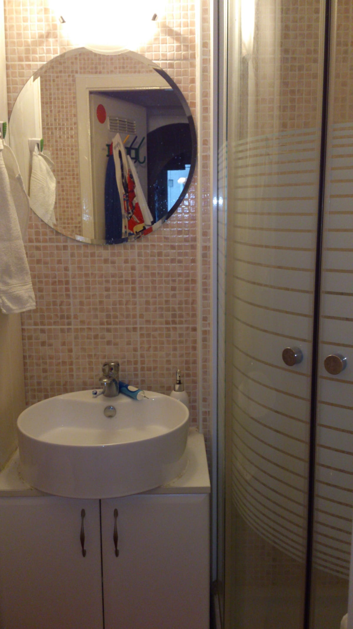 Seomra allais, tobán te, teallach i dteachín gleoite
