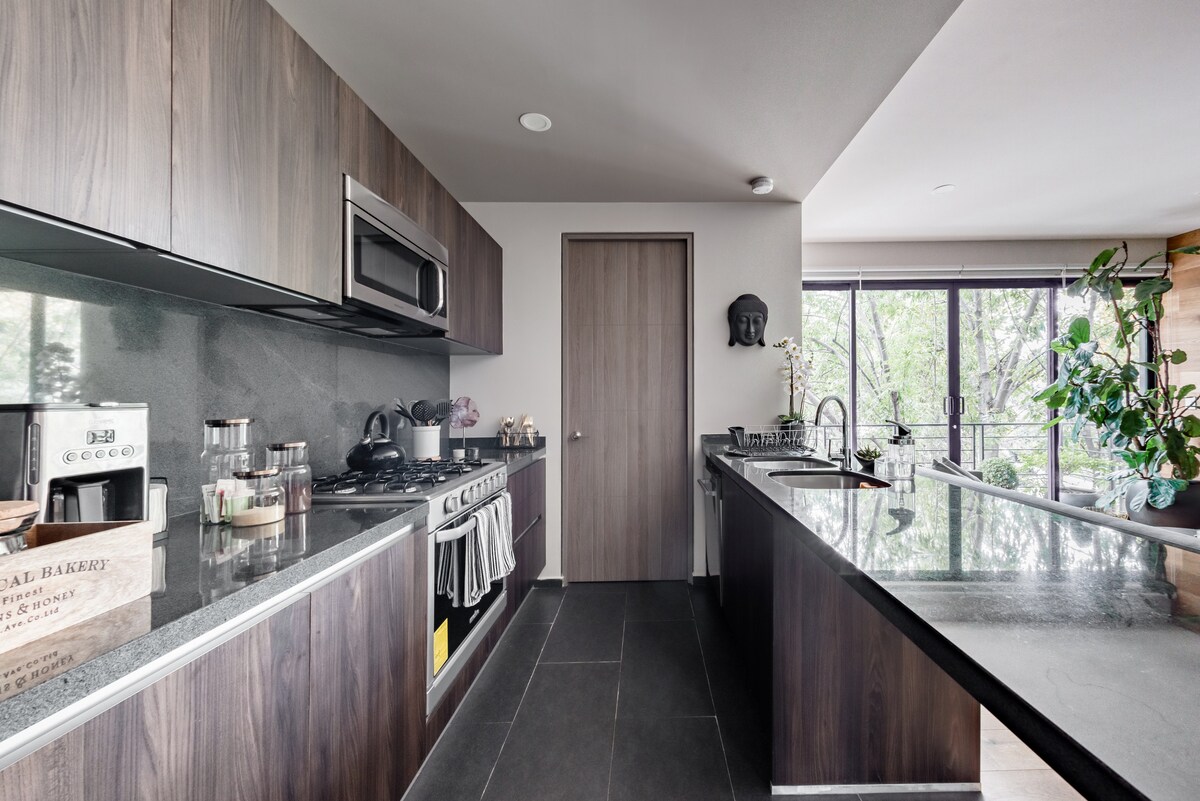 Cócaráil bricfeasta i gcistin ina bhfuil urláir thíleanna galánta agus baint shabby - chic. Ith ag bord nua - aois beo faoi dhaingneán solais nua - aimseartha globose. Recline le leabhar ar tholg suaimhneach i bhfianaise na crua - adhmaid shaibhre atá san árasán seo agus i bhfuinneoga ón urlár go dtí an tsíleáil. Árasán an - ghlan agus nua - chóirithe. Is mór againn na hábhair ardchaighdeáin is fearr a chur ar fáil chun d'fhanacht a dhéanamh an - chompordach. Téitheoir nó gaothrán ar fáil. Árasán álainn compordach, atá suite i gcroílár an Colonia Hipodromo Condesa. Tá Wi - Fi agus idirlíon tapa ann. Athchóirithe le déanaí, le dhá sheomra leapa mhóra agus seomra folctha ina bhfuil cithfholcadán ina bhfuil uisce te. Is áit iontach é chun do scíth a ligean tar éis lá dian in atmaisféar spreagúil Chathair Mheicsiceo. Cistin iomlán ina bhfuil cuisneoir / reoiteoir, sorn gáis/ oigheann. Sa chuid íochtarach den fhoirgneamh tá níochán. Is féidir fuinneoga i ngach seomra, go háirithe an fhuinneog sa seomra suí agus seomra leapa a fheiceáil crainn den choilíneacht a thugann spás gleoite dó. Is comharsanacht í de shiúl na gcos. Tá sé gleoite, sábháilte, lán de bhialanna, caiféanna agus siamsaíocht. Is siúlóid 2 nóiméad é go Parque México agus áisiúil le haghaidh iompair phoiblí. Tá stáisiún meitreo Chilpancingo 10 nóiméad ar shiúl. Tá an foirgneamh suite i bpointe straitéiseach, ós rud é go bhfuil tú ag siúl cúpla céim, gheobhaidh tú caife, beáir, bialanna, pictiúrlann, ollmhargaí agus iompar poiblí. Táim ar fáil agus is féidir teagmháil a dhéanamh liom trí theachtaireachtaí ar an bhfón, ar ríomhphost nó trí theachtaireachtaí Airbnb. Suite in La Condesa, níl an t - árasán ach spaisteoireacht ar shiúl ó chuid de na bialanna, na búitíceanna agus na margaí táirgí is bríomhaire i gCathair Mheicsiceo. Téigh ar shiúlóid go Bosque de Chapultepec in aice láimhe chun músaeim, zú, agus gairdíní luibheolaíocha na páirce a aimsiú. Tá rochtain ar gach iompar poiblí faoi fhad siúil. Tá an stáisiún meitreo Chilpancingo 10 nóiméad ar shiúl, tá seastán tacsaithe príobháideach 5 nóiméad ar shiúl, chomh maith le stáisiún malartaithe rothar Ecobici. Chomh maith le 5 bhloc is féidir leat an TuriBus a ghlacadh a thairgeann turasóirí chun eolas a chur ar Chathair Mheicsiceo ar bhealach praiticiúil.