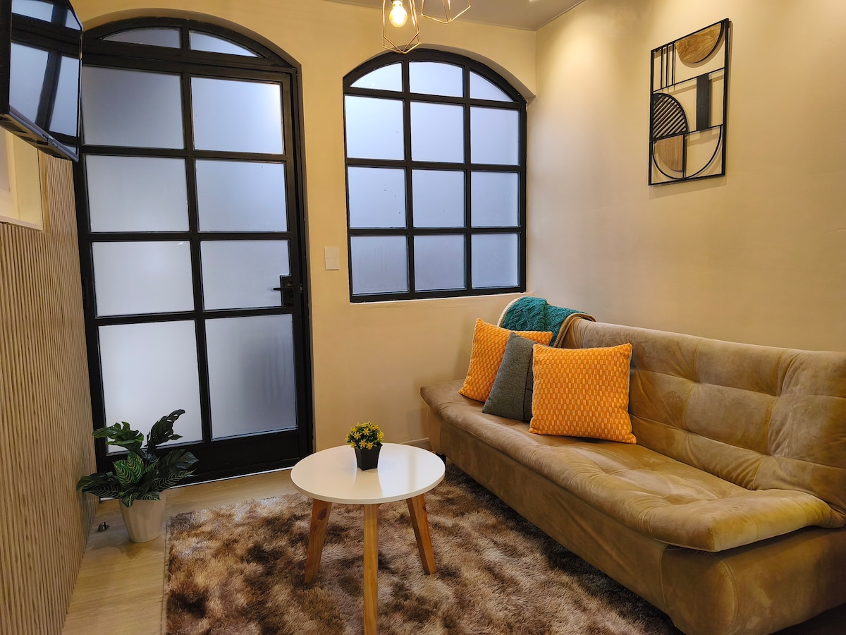 Lig do scíth leis an teaghlach in ósais shuaimhneach díreach nóiméad ó Plaza Calderón, croí bríomhar Cuenca. Tairgeann ✨ Suite Radiante: 1 Áit chónaithe ina bhfuil leaba thoilg, teilifíseán, agus cistinéad lánfheistithe; 1 seomra leapa fairsing ina bhfuil leaba bhanríona; 1 Seomra folctha nua - aimseartha le cithfholcadán; 1 Páirceáil saor in aisce. Níl Aerfort Mariscal Lamar ach 2.1 km ar shiúl. Cuir in áirithe anois é agus faigh blaiseadh den chuid is fearr de Cuenca!