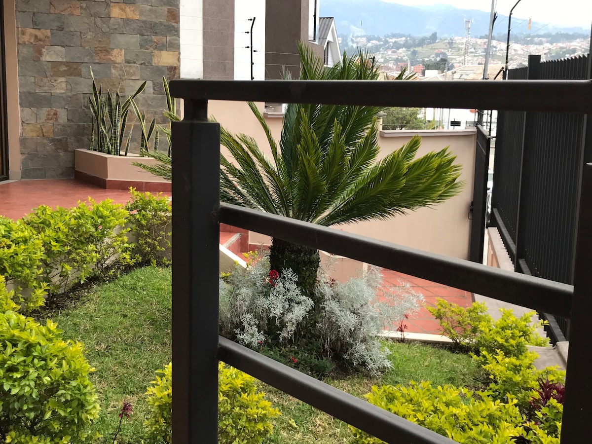 Árasán neamhspleách i dteach 3 scéal, tá an t - árasán ar an urlár uachtarach. Lonnaithe i bhforbairt phríobháideach le slándáil 24/7. Páirceáil ar fáil. Foirfe do theaghlaigh suas le 5 dhuine. ✅ Trí bhloc ó Monay Shopping. ✅ In aice le hospidéal IESS ✅In aice le hospidéal Rio. ✅ 8 go 10 nóiméad ón lár stairiúil ✅ 10 nóiméad ó Mirador de Turi. Laistigh den fhorbairt, tá go leor slándála, síochána agus ciúin ann.
