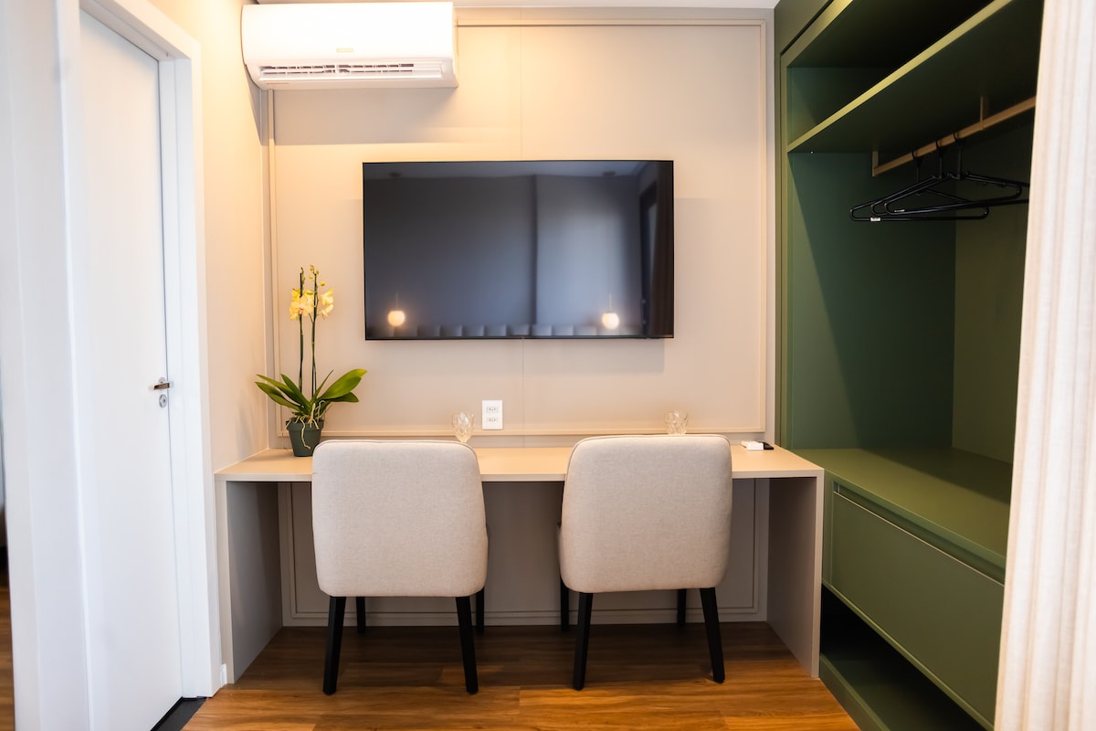 An mbíonn tú ag taisteal don obair? Faigh fanacht fadtéarmach ina bhfuil Wi-Fi ardluais agus spásanna oibre tiomnaithe.