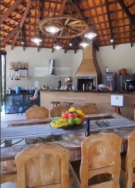 Teach fairsing compordach in Chapada dos Guimarães, atá oiriúnach do theaghlaigh agus do ghrúpaí. Freastalaíonn sé ar suas le 14 duine, 4 sheomra aerchóirithe le 2 sheomra, 1 seomra folctha sóisialta, 1 seomra folctha lasmuigh. Wi - Fi, teilifíseán cábla, teallach agus cistin iomlán. Lawn aimple le crainn phailme, linn snámha, both beárbaiciú agus oigheann píotsa, bréagáin do pháistí agus garáiste do 8 gcarr. Suíomh den scoth 3 nóiméad ó lár na cathrach, rochtain éasca, réitithe tríd. Compord, fóillíocht agus an dúlra in aon áit amháin!