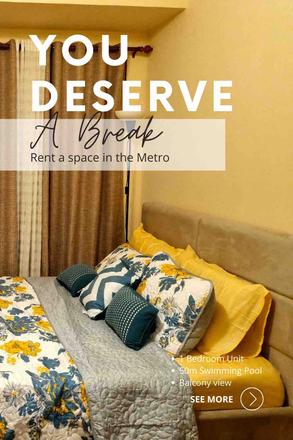 UASMHÉID de 4 dhuine fásta+2 pháiste! Neadaithe i gcroílár Bhá Manila, is é seo an t - éalú foirfe do theaghlaigh agus do ghrúpaí beaga atá ag lorg an fhanachta is fearr. Lig do scíth le cupán teolaí caife ar an mbalcóin, téigh ag snámh sa linn snámha, nó téigh ar maos sa sabhna suaimhneach. Déan cuimhní buana le nithe is díol spéise in aice láimhe amhail Star City agus Mall na hÁise! Le cistin lánfheistithe, línéadach tí ardchaighdeáin agus go leor eile. Tar ar fhanacht dodhearmadta. Déan áirithint anois. 10 nóiméad go Mall na hÁise 25 nóiméad go NAIA