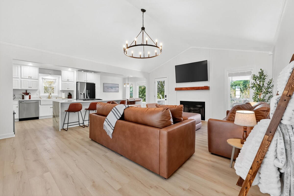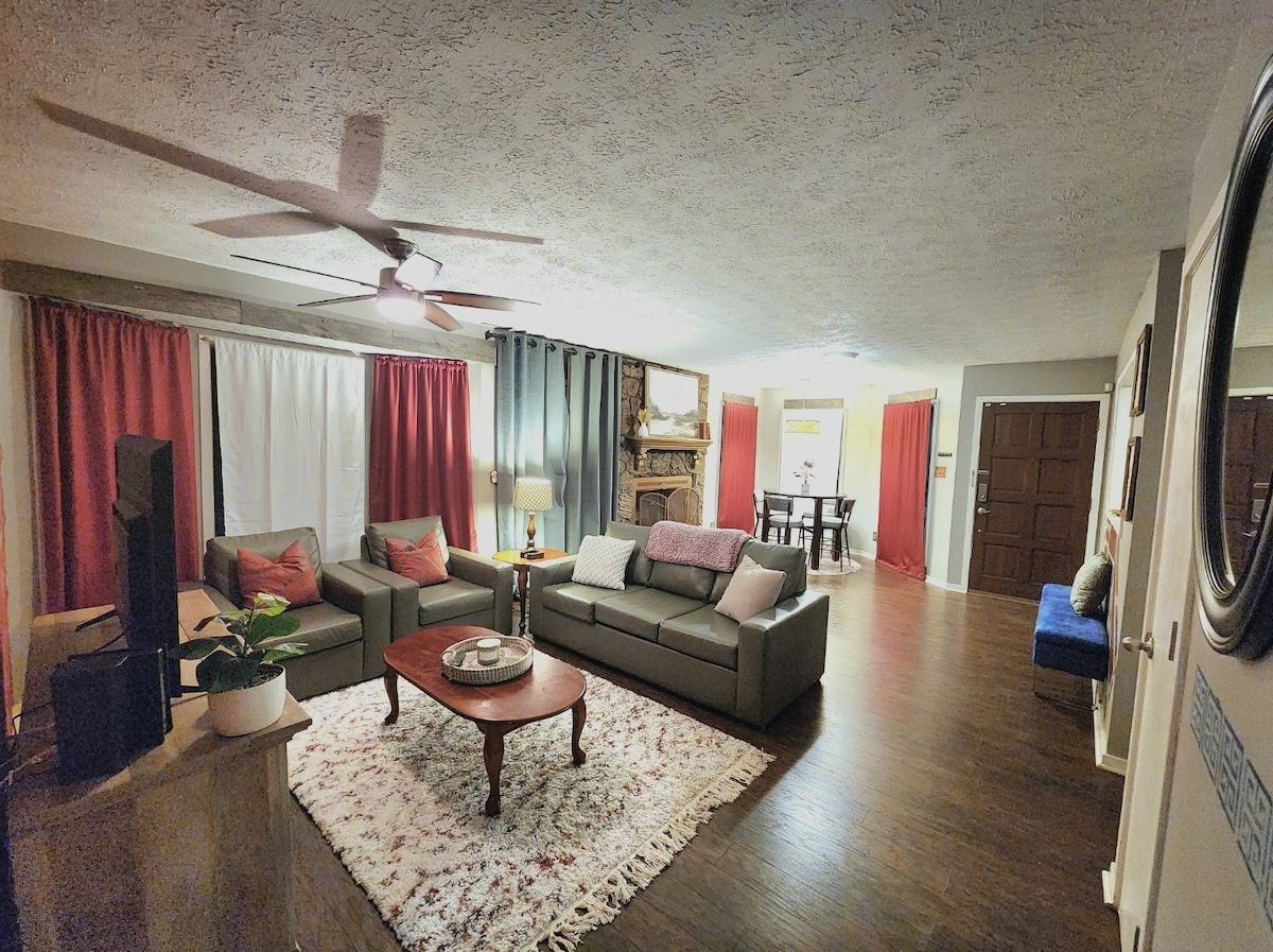 Foirfe do chuairteanna teaghlaigh nó do ghrúpaí beaga, freastalaíonn an tsraith phríobháideach Fayetteville seo go compordach ar suas le triúr aíonna. Bain sult as teilifíseán 65 orlach sa seomra suí agus teilifíseán 55 orlach sa seomra leapa, le Netflix, Disney+, Premier, agus Jellyfin. Tá leaba rímhéide do bheirt daoine fásta agus naíonán sa seomra leapa, agus tá tolg codlata banríona sa seomra suí do dhuine fásta amháin nó do bheirt pháistí. Le cistin, spás oibre, seomra folctha, seomra níocháin agus clós faoi iamh atá feistithe go hiomlán, tá sé foirfe d'aon fhanacht.