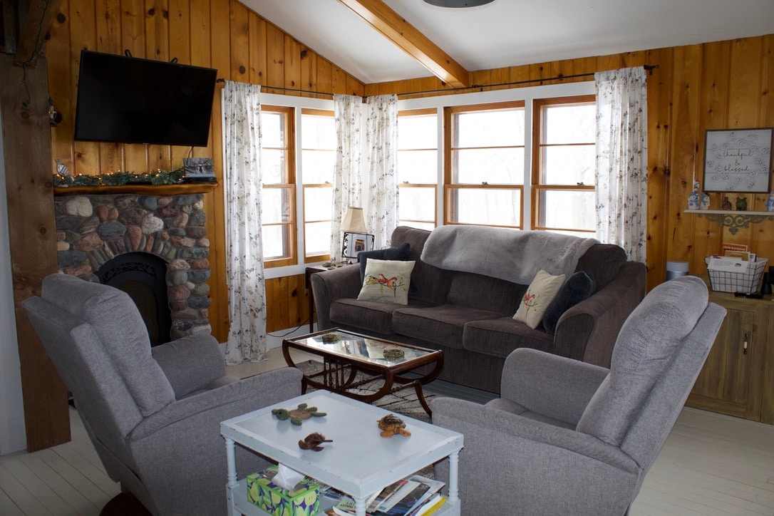 Tearmann cábáin príobháideach cúlráideach ó thuaidh ó Loch Turtle, WI. Is éard atá i gceist thíos staighre ná seomra suí/codlata tolg, cistin agus seomra folctha. Tá 1 seomra leapa ar an staighre le banríon, leaba sa lochta oscailte agus 1/2 seomra folctha. Tiomáin trí bha féaraigh agus páirceanna feirme isteach sa choill, isteach ar bhóthar gairbhéil príobháideach, agus síos cabhsa fada coillteach foirceannadh chuig ár dtearmann locha! Ní mholaimid cuairt a thabhairt sa gheimhreadh gan tiomáint 4 roth! Tá bád pontúin ar cíos ar fáil mar bhreis air! Fáilte roimh pheataí ar tháille $ 90.