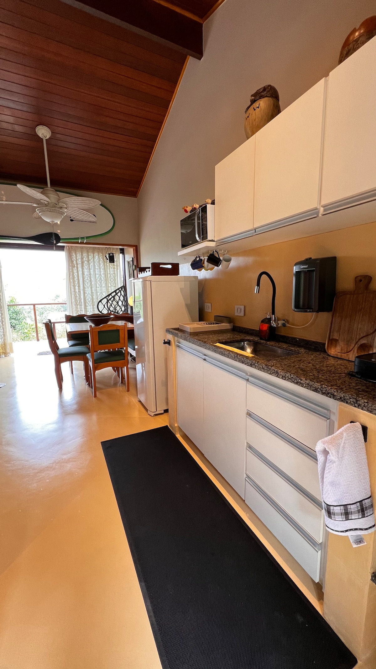 Níos mó ná áit le fanacht, anseo is féidir leat taithí a fháil ar nasc leis an dúlra agus leis an bhfoirm chomhfhiosach. Táimid in árasán timpeallaithe ag Foraois an Atlantaigh, díreach 1 km ó Maresias Beach — 5 nóiméad sa charr nó 20 nóiméad ar shiúl na gcos. Dearadh gach mionsonra chun compord a chur ar fáil le feasacht, gan farasbarr agus le meas ar an dúlra. Foirfe dóibh siúd atá ag lorg tearmainn san fhoraois, simplíocht le cuspóir agus stíl mhaireachtála níos éadroime. @chalesnamatamaresias