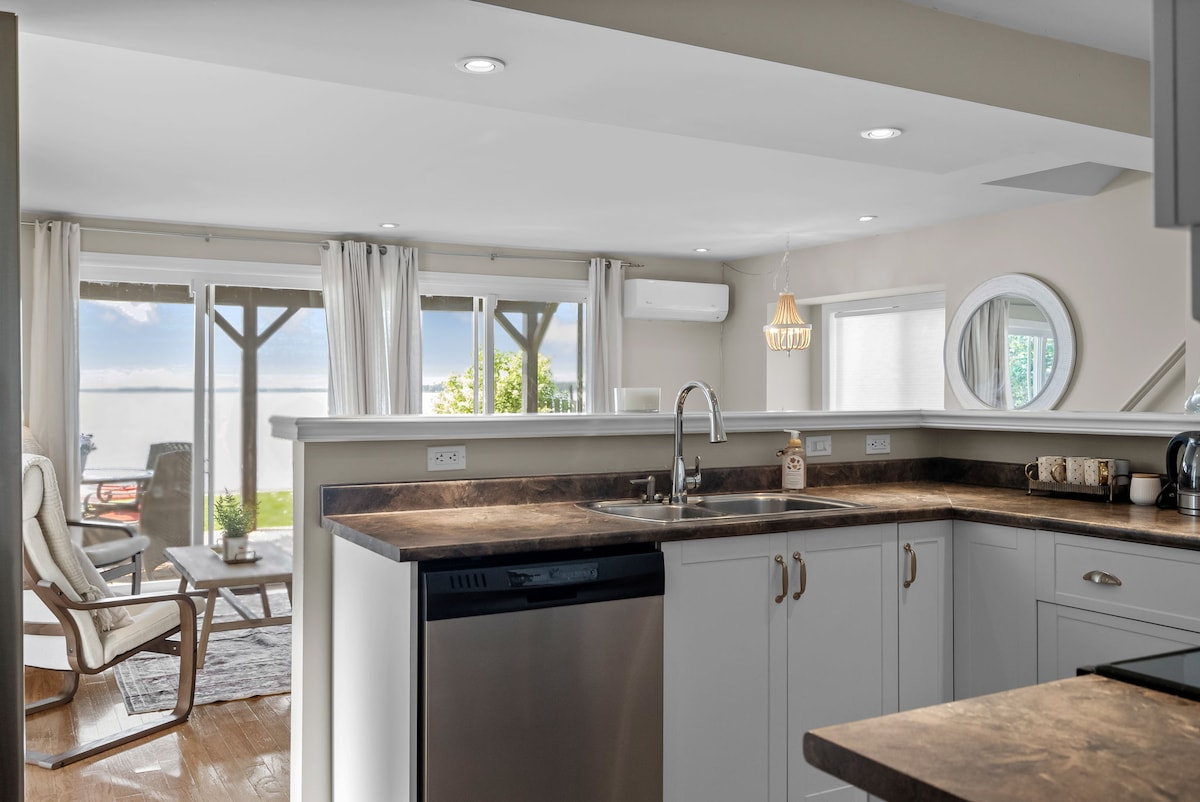 Teachín iontach stilted ar St - Lawrence Abhainn. 50 nóiméad go Montréal fuadar. Luí gréine den scoth agus radhairc abhann ar 3 thaobh. Urláir radanta, cistin chócaire, troscán & fearais ardleibhéil. Máistir-svuít thuas staighre le lochtán, ag breathnú amach ar an Abhainn. Teallaigh laistigh/lasmuigh agus adhmad tine le hadhmad. Idirlíon ard spd. Sabhna, ardán mór & gairdín, páirceáil 5 charr. Canú, cadhc, 2 rothar. Sciáil, fánaíocht, galf, pickleball, rothaíocht. 4km go sráidbhaile gleoite St-Anicet. Seoid.
