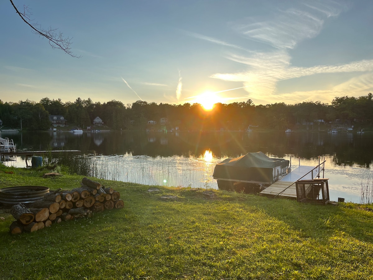 Bain sult as saoire dheas shómasach thuathúil ag lóiste príobháideach ina bhfuil tobán te ag breathnú amach ar an loch, crosrian mótair don aos óg, calafort mór cairr, póirse, agus 2 phaitió ag féachaint amach ar an loch . Taobh istigh, is féidir leat taitneamh a bhaint as an seomra suí lárnach teolaí le teallach, tolg fairsing, agus teilifíseán Samsung 70 orlach le fuaim timpeall, sé T.V. cliste san iomlán ar fud an bhaile. Tá beár, an dara cistin, leaba súdaireachta agus seomra cluiche thíos staighre ina bhfuil tábla linn snámha,dairteanna agus ping pong. (Oiriúnach do thobac)