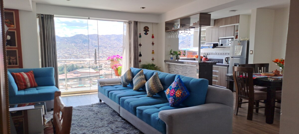 Árasán eisiach i gcathair Cusco, atá suite i gcomharsanacht Balconcillo, 15 nóiméad ó lár an bhaile agus 20 nóiméad ón Aerfort le tacsaí. In aice le comharsanacht San Blas. Árasán nua - aimseartha fairsing ina bhfuil na saoráidí go léir, Seomra suí, Cistin, Seomra bia, 03 Seomraí folctha, 02 Seomra Folctha, Níocháin, feistithe go hiomlán le hearraí ar ardchaighdeán; Radharc lánléargais agus álainn ar Chathair Cusco; oiriúnach do theaghlaigh, do ghrúpa cairde. Is muidne an rogha is fearr atá agat in Cusco.