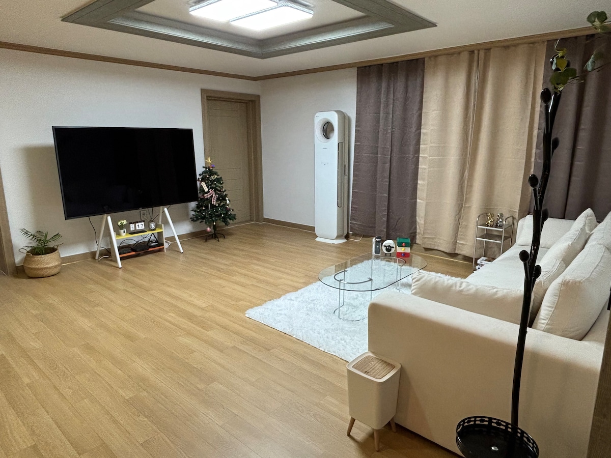 11 nóiméad de shiúl na gcos ó Stáisiún Dongdaegu, 5 nóiméad sa charr! Tá Aerfort Daegu 10 nóiméad ar shiúl. Is spás oiriúnach é do theaghlaigh agus do leanaí le fanacht, agus is teach é atá saor ón torann idir na hurláir sa saol laethúil. Tá Béarla líofa ag an óstach agus ag a teaghlach agus bíonn siad ar fáil i gcónaí chun cumarsáid a dhéanamh le haíonna. Cuirtear an dara hurlár ar fad ar fáil go heisiach d'aíonna, agus tá ár dteaghlach ina gcónaí ar an gcéad urlár! Tá trí chat inár dteach ar an gcéad urlár, agus is é Hooray ainm an chait. Téigh ar shiúlóid sa chlós uair amháin ar feadh tamaill Mar gheall air seo, is féidir leat bualadh le Hooray agus a teaghlach. Mar sin féin, is cat doiléir é go bhfuil lucht leanúna na ndaoine a bhfuil fuath cait agus a reáchtáil ar shiúl. Ós rud é go bhfuil leanaí againn inár dteach freisin, cuirimid fáilte mhór roimh theaghlaigh a bhfuil naíonáin agus naíonáin acu.