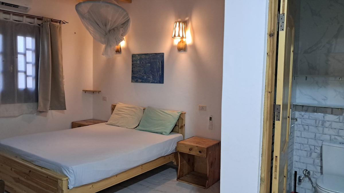 Stay right by the beach in this comfy, fully air-conditioned apartment — perfect for families or a group of friends. Enjoy the fresh sea breeze, a sunny rooftop with chill spots and sunbeds, and an equipped kitchen if you feel like cooking. It’s just a short 10-minute walk to Assalah Square, where you’ll find shops, cafes, and local vibes. Whether you’re sunbathing on the rooftop, relaxing indoors, or exploring Dahab, this place has everything you need for an easy, laid-back stay.