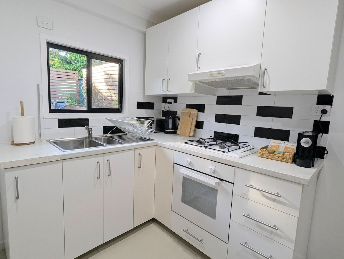 Bain sult as fanacht síochánta i do sheomra leapa ina bhfuil árasán príobháideach atá go hiomlán agus atá feistithe le gach rud a bheidh uait. Beidh bealach isteach ar leith, verandah agus cistin lánfheistithe a dhéanamh le haghaidh fanacht úrnua. In aice le siopaí, bialanna agus iompar poiblí is féidir leat a leagan amach chun pleananna an lae a dhéanamh. Caith do thráthnónta ag ligean do scíthe ag an gcrompán meandrach timpeallaithe ag bushland ar maos i suaimhneas an dúlra. Tá áiseanna níocháin ar fáil ach iad a iarraidh.
