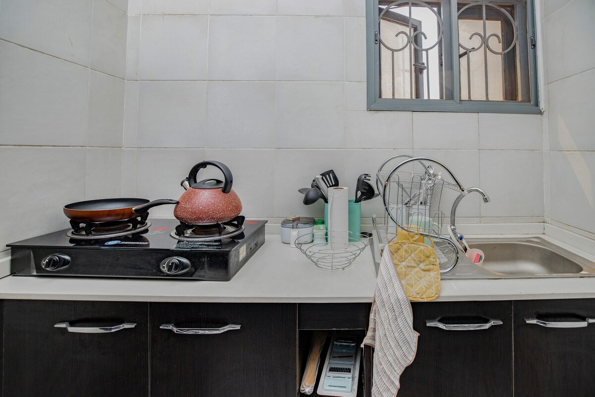 Cibé acu an bhfuil tú ar cuairt le haghaidh gnó nó fóillíochta, cuireann an cíos gearrthéarmach aon seomra leapa seo, tearmann ar fáil ina bhfuil saoráidí a mhothaíonn go bhfuil tú sa bhaile i ndáiríre. Tá an réadmhaoin suite laistigh d'eastát daingnithe geataithe. Tá a CCTV fál, geata agus imlíne féin ann, rud a thugann suaimhneas intinne iomlán duit. Tá uisce agus cumhacht 24/7 le cúltaca inbhéartóra agus gineadóra. Tairgeann seirbhísí glantacháin áisiúlacht atá curtha in oiriúint do do sceideal. Beidh tú sásta leis an só agus an compord atá ar fáil sa spás uathúil seo.