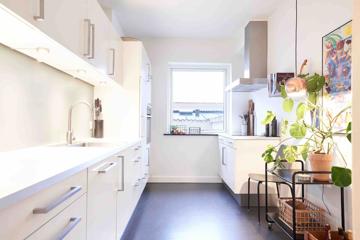 2 oíche ar a laghad - minimum 2 nights. Suíomh den scoth, achar gearr ón lár, le bialanna, caiféanna agus músaeim. Páirceáil díreach ag an doras chomh maith le ollmhargadh, bácús agus stáisiún peitril. Tá lochtán príobháideach ann le troscán gairdín - clúdaithe agus faoin ngrian, beárbaiciú agus áit tine. Tá gach rud díreach athchóirithe. Tabhair faoi deara: Tá pacáistí línéadach DKK 50,-/in aghaidh an duine (línéadach leapa, 4 thuáille, mata folctha, éadaí cistine, srl.) éigeantach. Níl an teach oiriúnach do pháistí nó do dhaoine a bhfuil deacracht acu siúl.