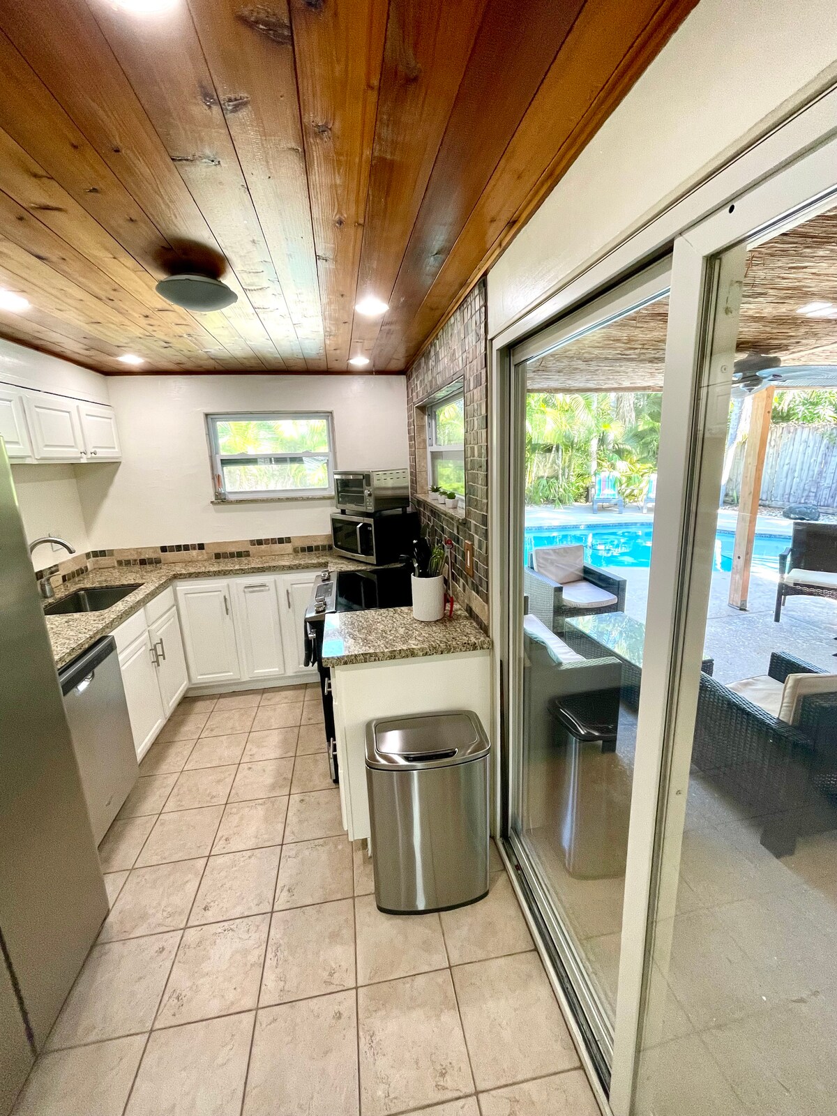 Teach álainn in Fort Lauderdale leis an gcathair agus an trá laistigh de 10min Uber/Lyft. B'fhéidir nach gá duit imeacht fiú mar gheobhaidh tú do phíosa parthais féin sa chúlchlós i lár na cathrach iontach. Go hiomlán Príobháideach cúlchlós agus linn snámha téitheoir, gríoscán, soláthairtí trá lena n - áirítear tuáillí, seampú/feabhsaitheoir, cistin stocáilte, agus pacáil 'n súgradh. Níl aon amenties comhroinnte. meaisín níocháin agus triomadóir ar an láthair d'aíonna. Ceadaithe Cathair Chíos Saoire Fort Lauderdale, Teastas #170 1190