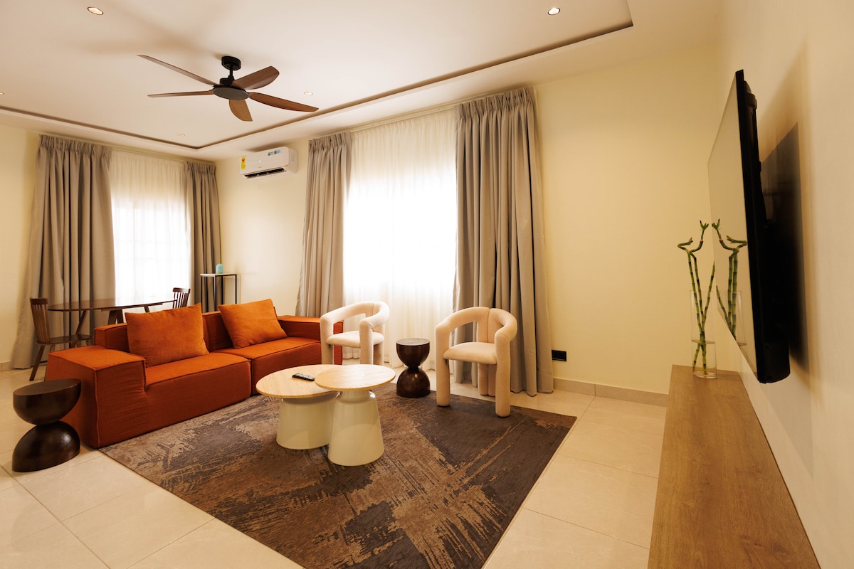 Bain sult as fanacht álainn inár n - árasán fíor - chompordach glan, foirfe do thaistealaithe aonair agus do lánúineacha. Le línéadach tí plush, DSTV iomlán, Netflix, agus soilsiú cliste faoi rialú gutha, cuireann ár spás scíth agus áisiúlacht gan chomhoiriúnú ar fáil. Lonnaithe díreach 15 nóiméad ó Aerfort Idirnáisiúnta Kotoka agus siúlóid ghearr go dtí na háiteanna itheacháin is fearr in Accra, is é seo an bonn iontach chun an chathair a iniúchadh.