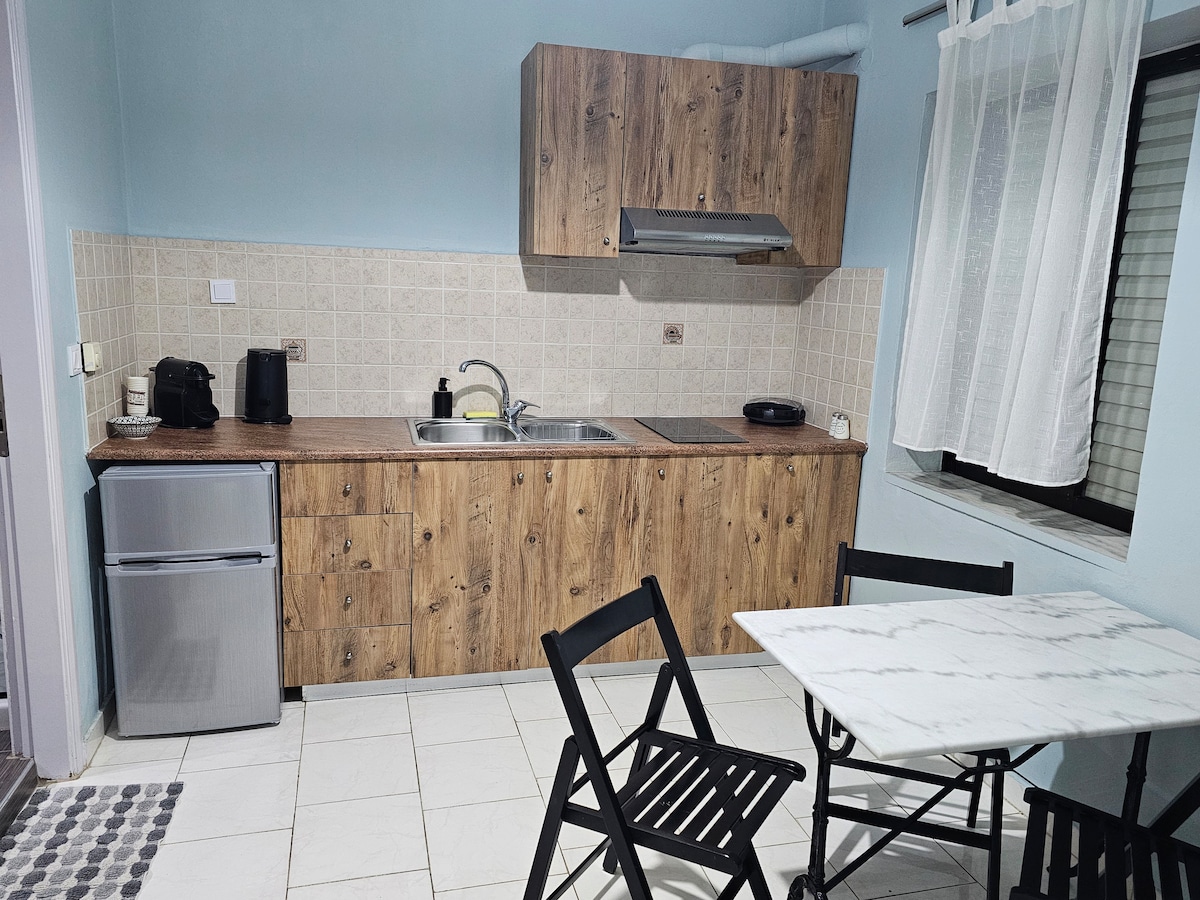 With great zeal and respect to our guests, we created a pleasant accommodation space with all the necessary conveniences. The studio is fully furnished with a queen size -pocket sprigs mattress- bed, a fully equipped kitchen, and satellite TV. It’s located 100m. away from the Kalamaki beach which is awarded with a blue flag. It’s only 5 km away from the center of Chania. Nearby the apartment, our guests can find a bus stop, mini market, a pharmacy, a pizzeria, cafés and restaurants.