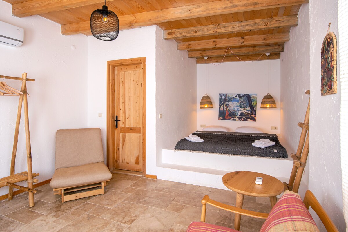 Lonnaithe ar chnoc i Sráidbhaile Hızırşah Datça, geallann an teach cloiche iontach seo eispéireas saoire dodhearmadta lena radharc iontach ar an ngleann agus ar an sráidbhaile. Deartha le gnéithe ailtireachta nua - aimseartha agus stairiúla araon, cuireann an teach cloiche fairsing seo gach rud a theastaíonn uait le haghaidh saoire chompordach ar fáil. Soláthraíonn sé timpeallacht fhairsing shuaimhneach ina bhfuil na háiteanna suí lasmuigh agus an linn snámha atá deartha go speisialta.