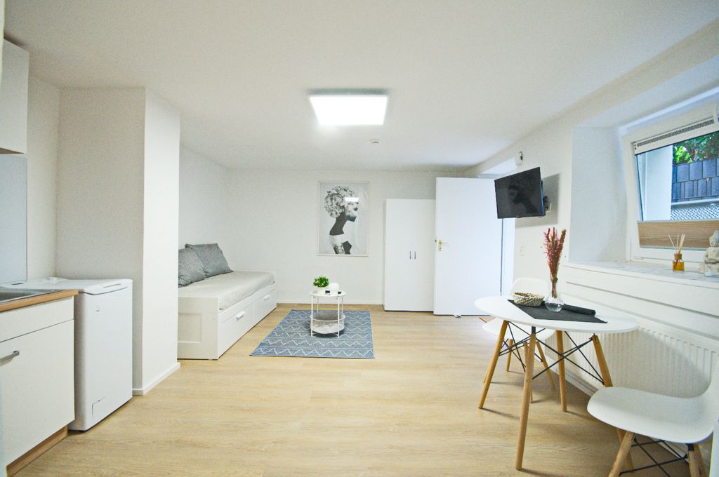 Cuirimid dhá árasán atá go hiomlán, ar ardchaighdeán agus atá feistithe go hiomlán ar fáil inár n - áiléar. Tá seomra leapa iontu seo ina bhfuil leaba shingil (90 cm x 200 cm), seomra ina bhfuil cistin agus seomra cithfholcadáin ina bhfuil leithreas. Is féidir Ollscoil Ruhr, Institiúid Dlíodóirí na Gearmáine (Campas Vita), BioMedizinPark (IFK, Acadamh Aesculap) a bhaint amach de shiúl na gcos i gceann 10 go 15 nóiméad.