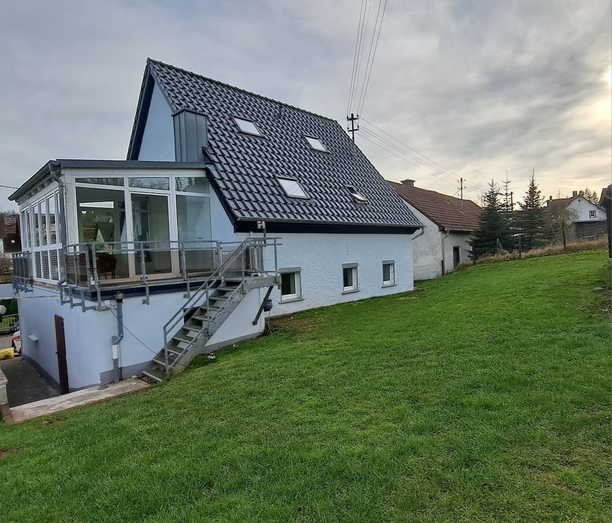 Árasán áiléir iontach (130 méadar cearnach) i gcroílár an Eifel bolcánach, in Mehren/Daun. Suíomh iontach do shiúlóirí/rothaithe chun eolas a fháil ar an Maare agus ar an Eifelsteig, tearmann chun do scíth a ligean. Téann áit itheacháin fhairsing isteach sa ghrianán iontach le teallach agus chuig an ardán ina bhfuil troscán compordach gairdín. Féach ar an áit agus an gleann. Trealamh feistithe go hiomlán. An dá sheomra leapa le leapacha dúbailte (160cm). Ón rochtain seomra leapa níos mó ar an ardán. Páirceáil i gceartlár an tí. Fáilte roimh pháistí.
