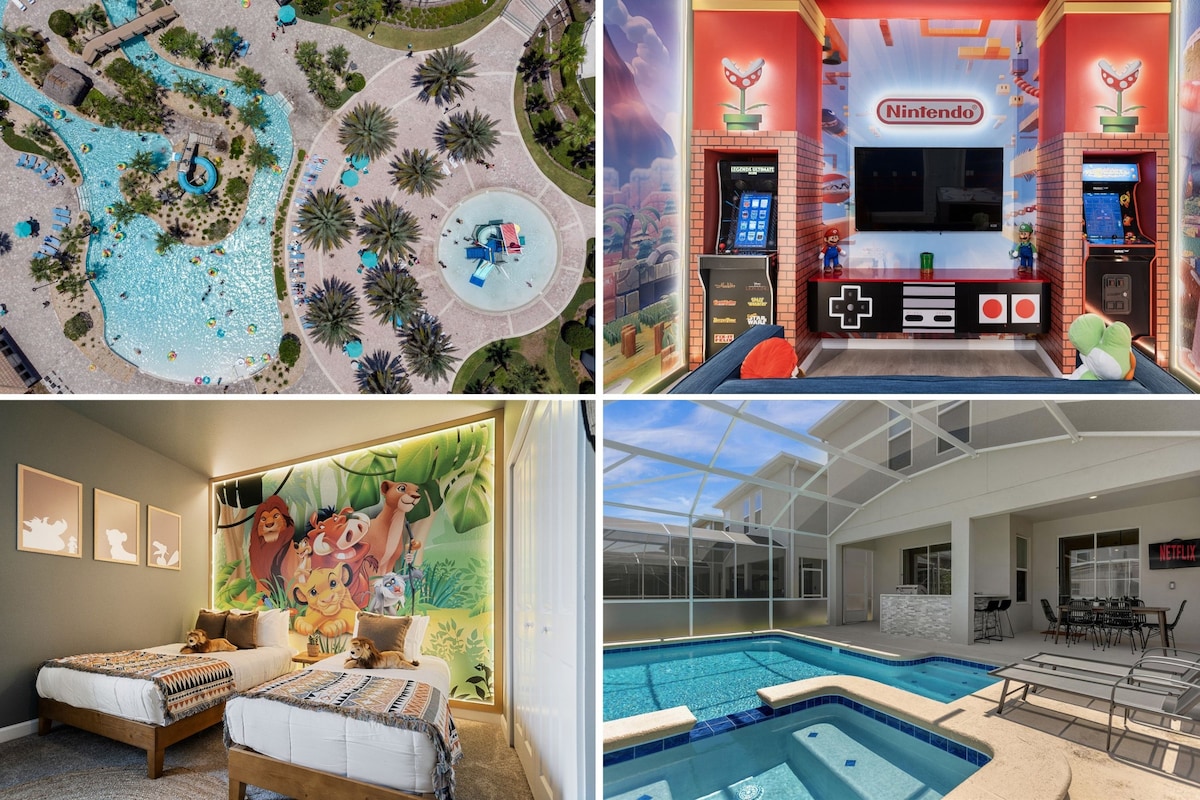 Bain sult as ár nDíol Luatháirithinte agus Sábháil! ✨ Aimsigh éalú iontach ag Ice Saber Manor - Villa iontach 6 leaba ina bhfuil seomraí REOITE agus SPIDER - Man, 4 phríomhsheomra álainn agus roghanna siamsaíochta gan deireadh! Tum thú féin in iontais chineamatacha le hamharclann SCANNÁN Star Wars, cuir crios ar do cheanáin sa cheantar sna tithe tábhairne nó bain sult as ár n - AMHARCLANN COIS LINNE! Lig do scíth i do Pool & Spa téite nó bain sult as ár BPÁIRC Uisce! Déan iniúchadh ar Disney ó chompord an tí nua - aimseartha seo atá suite in ionad saoire álainn!