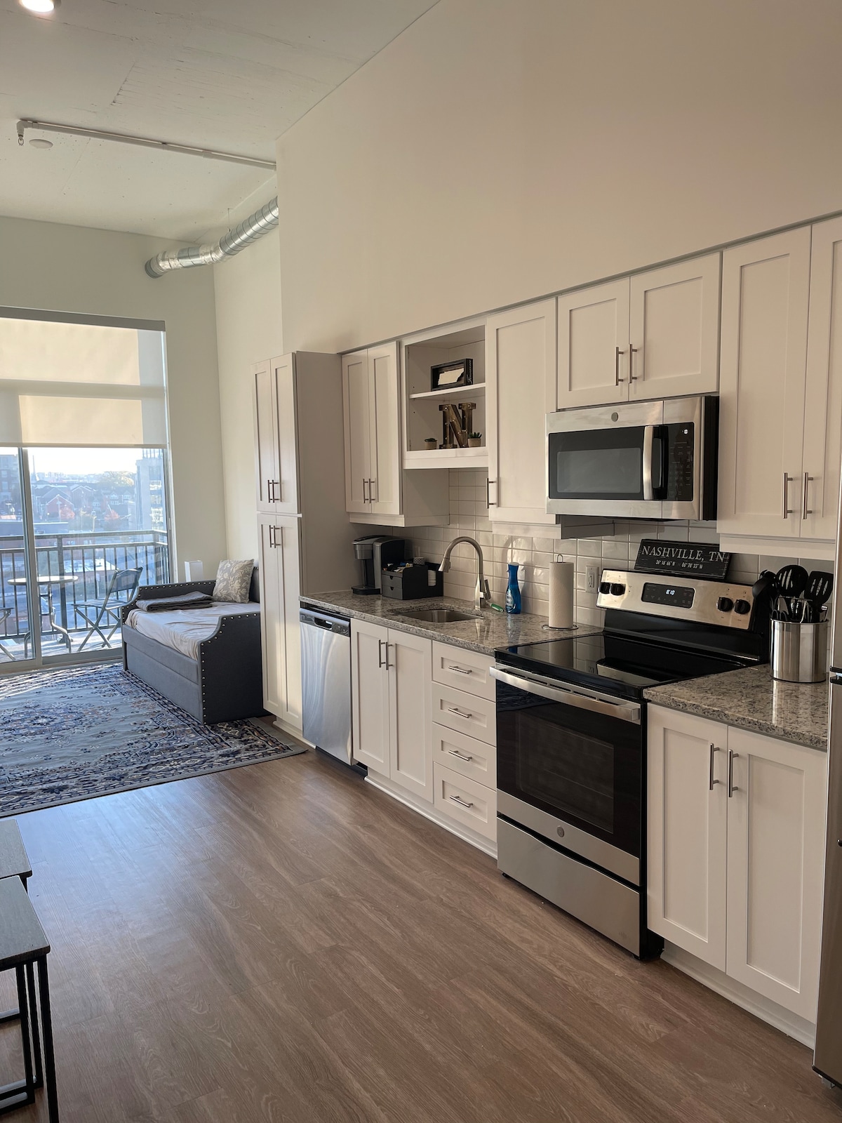 We are a boutique Condo in the heart of 12 South. We provide complementary local coffee in every suite. Our location is in one of the best neighborhoods in Nashville. You can walk to just about anything you may desire. If you want to just sit, have a drink and people watch, we have a seat for you on our balcony overlooking all of the action on 12th Ave South. King Bed plush Linens yummy bath products , full kitchen and tub shower combo Come enjoy!