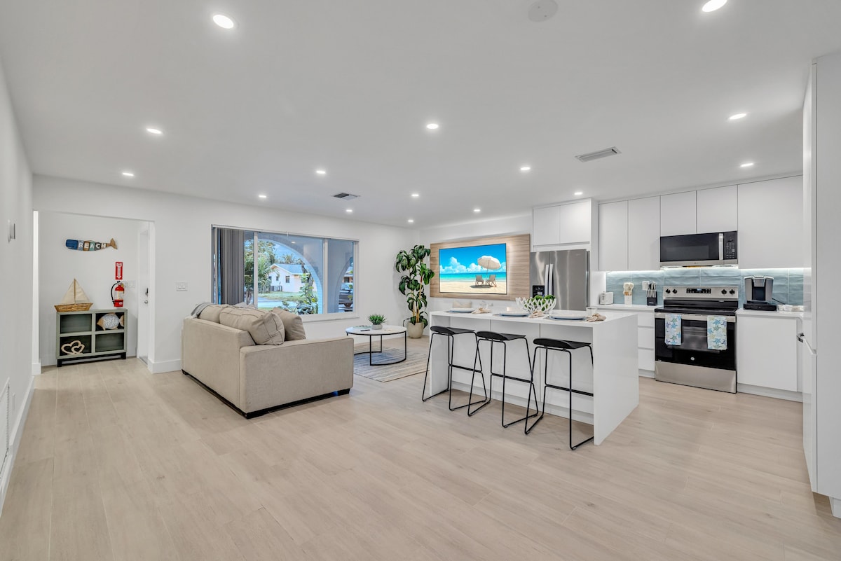 Bain sult as d'fhanacht sa teach nua - athchóirithe 3 sheomra leapa (4 leaba) seo i meitreo Fort Lauderdale. Tá cistin iomlán, seomraí folctha nuashonraithe, áiteanna maireachtála agus itheacháin galánta, chomh maith le cúlchlós príobháideach chun do scíth a ligean ann. Foirfe do theaghlaigh nó do ghrúpaí, cuireann an teach seo compord, áisiúlacht agus bríomhar úr in Florida ar fáil díreach nóiméad ó shiopadóireacht, bia agus nithe is díol spéise. Is féidir taisteal go héasca chuig Sawgrass Mills (an 2ú ionad is mó in Florida & 11ú i SAM), trá Fort Lauderdale, Aerfort Idirnáisiúnta fLL, agus go leor eile.