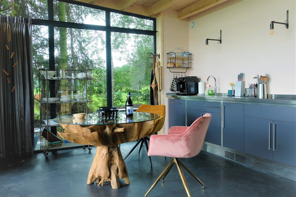 Fáilte go dtí ár dteach beag bídeach uathúil, curtha i leataobh i bhforaois phríobháideach ar imeall shráidbhaile gleoite na Freaslainne in Noordwolde. Tá an lóistín nua - aimseartha seo oiriúnach do lucht iarrtha na síochána agus do dhaoine a bhfuil dúil acu sa dúlra. I rith an tsamhraidh, bain sult as do ghairdín príobháideach fairsing ina bhfuil áit shuíocháin, vearanda agus ámóg i measc na gcrann. I rith an gheimhridh, is féidir leat suí go compordach taobh istigh den sorn adhmaid a théann an spás in am ar bith. Tá an teach beag bídeach dlúth ach feistithe leis na compord go léir!