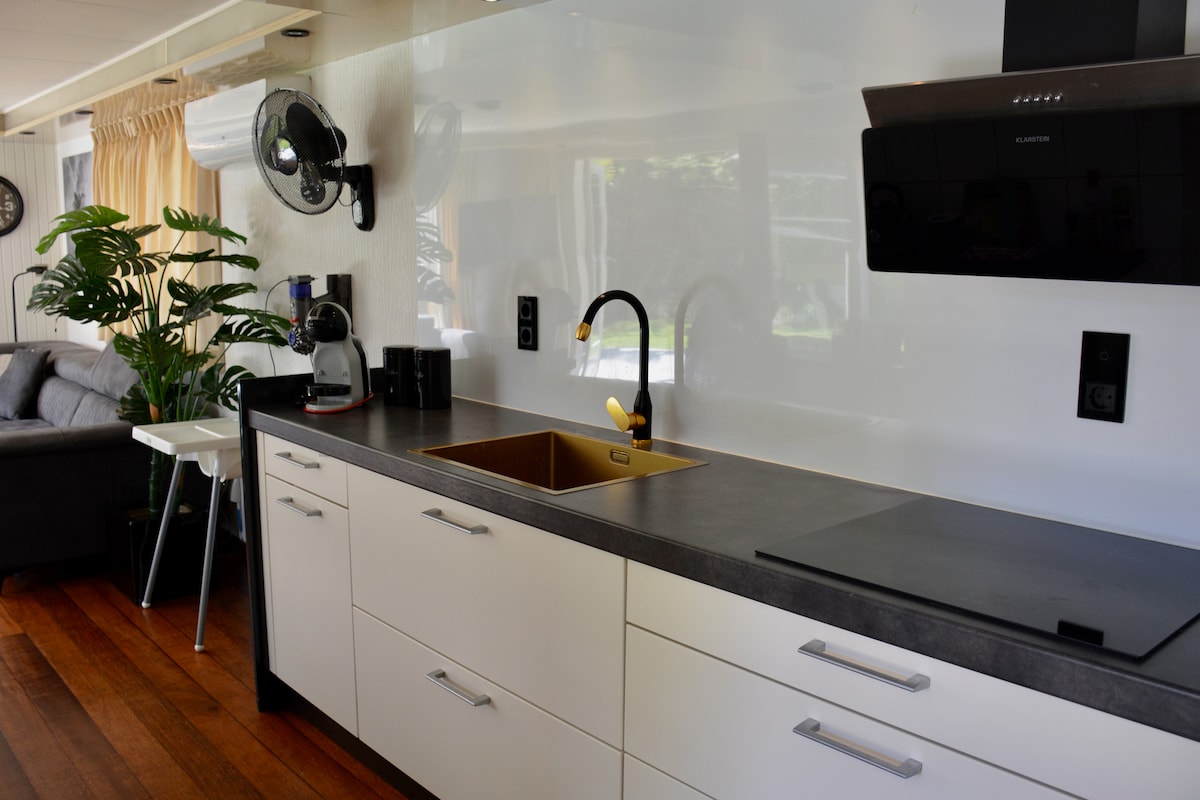 Áras cónaithe lán-nua-aimseartha, suite go neamhspleách, le gach compord, le radharc oscailte ar na Westeinder Plassen. Tá seomra suí agus itheach fairsing ag an árthach cónaithe le cistin dea-fheistithe. Tá dhá sheomra leapa fhairsing agus seomra folctha álainn, atá feistithe le meascán níocháin/triomaithe, thíos staighre. Tagann an fuinneamh go léir trí phainéil ghréine. Ar an lochtán is féidir leat taitneamh a bhaint as an ngrian agus as an radharc ar an gcuan. Bainfidh tú taitneamh as atmaisféar suaimhneach réchúiseach Aalsmeer freisin.