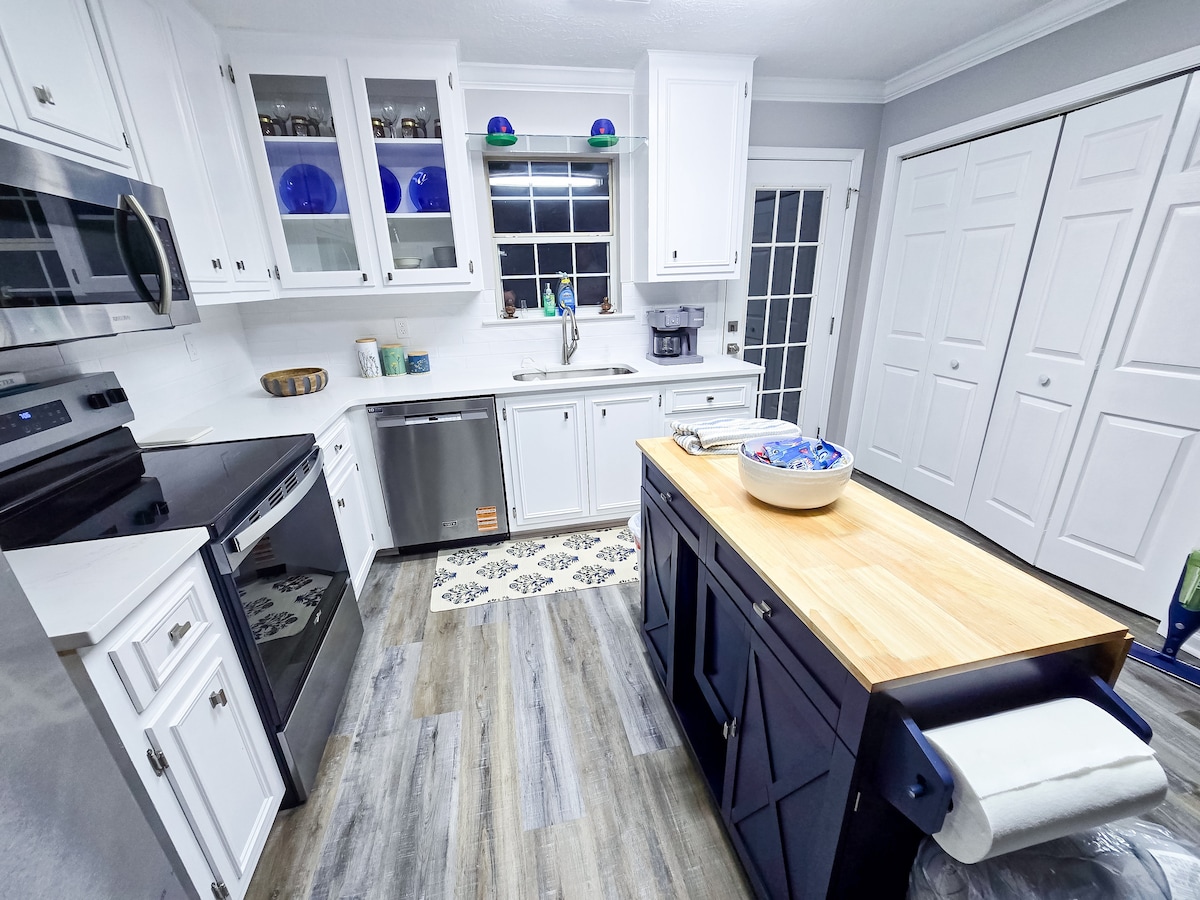 An bhfuil tú ag lorg an tearmainn fhoirfe nó an tsaoire deireadh seachtaine? Tá tú againn! Tá póirse tosaigh mór clúdaithe sa teach. Tá leaba lae rómhór sa seomra suí le trundle tarraingthe amach chun freastal ar bheirt. Tá an teach maisithe le healaín uathúil uathúil! Gan trácht go mbeidh tú ar an tsráid chéanna le duine amháin, ach dhá cheann de na tithe atá le feiceáil ar Thumadh HGTV Hometown! An mian leat iniúchadh a dhéanamh ar lár an bhaile, is siúlóid éasca nó 3 nóiméad é tiomáint chuig an droichead i lár an bhaile.