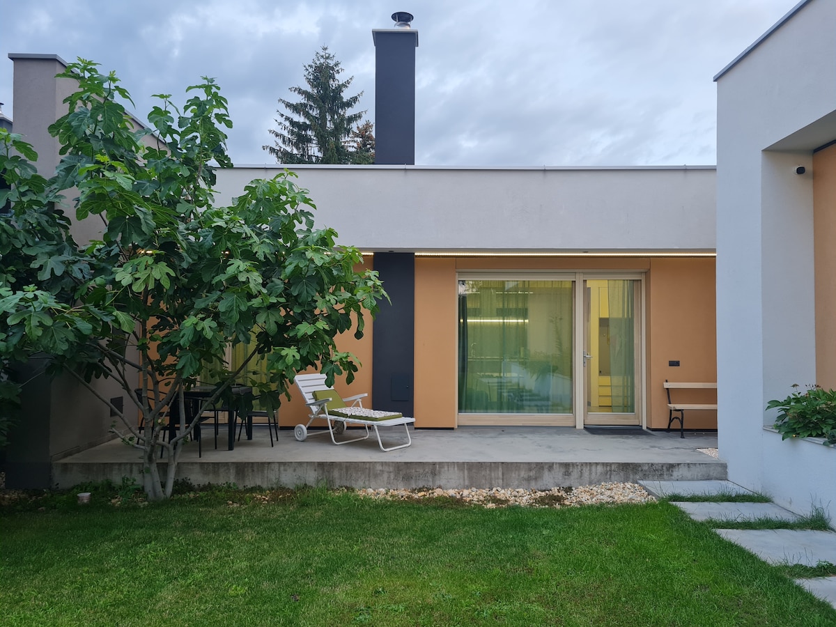 I limistéar an ionaid saoire Bánomkert, díreach in aice le Promanáid Matthias King, tá lóistín príobháideach díreach 500 m ón bhfolcadán. Is foirgneamh árasán ar leith é an t - árasán nua - aimseartha ar ardchaighdeán ar phlota a úsáideann teaghlach de 3, a bhfuil bealach isteach ar leith ann, ar féidir leis freastal go compordach ar 2 dhuine, rud a fhágann go bhfuil sé foirfe do lánúineacha. Mar gheall ar chistin an tsamhraidh agus beárbaiciú sa ghairdín tá sé níos teolaí fós a scíth a ligean. Tá teallach sa teach, mar sin tá atmaisféar pearsanta ann fiú sa gheimhreadh.