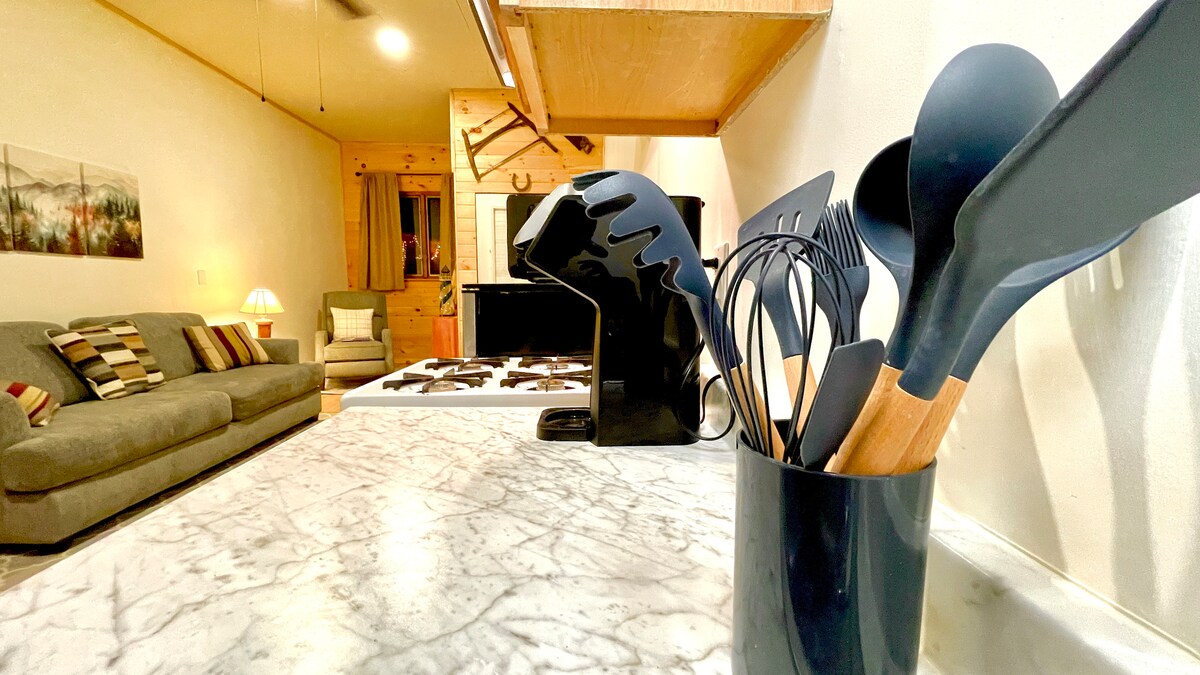 Braithimid gurb é an bealach is fearr le cur síos a dhéanamh ar ár saoire ghearr le bheith “Rustic Elegance ”. Nuair a shiúlann tú tríd an doras, mothóidh tú teas teachín Adirondack a bhfuil stíl uathúil air láithreach. Lonnaithe in aice láimhe le Highway Acadia (aka Route 1), táimid gar do Fort Knox, Castine, agus Acadia stairiúil. Bain sult as ár “Teach Glasa” atá ceangailte agus atá déanta ar theach/paitió aoibhinn ar scáileán, ar shuíomh na tíre, ar pháirceanna fraochán, agus ar na géarchéimeanna áille gréine agus ar na seiteanna gréine! Poll dóiteáin, crúite capaill, go leor!!!