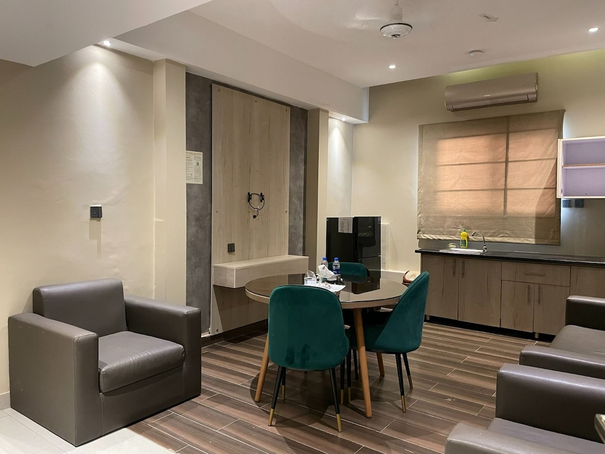 Luxury Business Suite | Majestic BnB | DHA Phase 7 Welcome to one of the crown jewels of Majestic BnB, located in the heart of DHA Phase 7. This spacious and elegantly designed 1-bedroom suite offers a luxurious living experience tailored for guests who appreciate comfort, style, and tranquility.