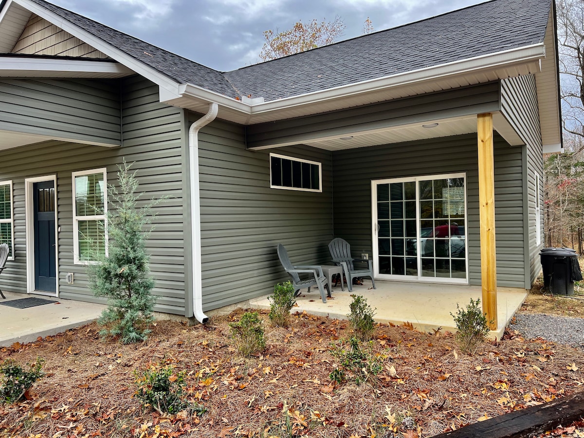 Is é plean urláir stiúideo Caney Cottage an saoire fhoirfe do lánúineacha.Cottage boast na radhairc is fearr agus is gaire ar an Caney Fork w/urlár go gloine síleála ar fud an chúl a théann isteach i bpóirse clúdaithe. Céim isteach sa chlós cúil & duillín do chadhc nó do líne iascaireachta san uisce.Read leabhar ag imeall na habhann nó taitneamh a bhaint as an poll dóiteáin. Cuireann an poll dóiteáin rud éigin ar fáil do gach duine chun taitneamh a bhaint as gach duine & níos tábhachtaí ná scíth a ligean & unwind.Very uathúil & wquaint/comfy leaba bhanríona & leaba bhanríona banríon. 3 mi go dtí Ionad an Chnoic.