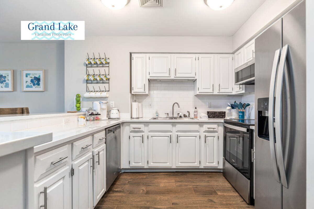 Anchors Aweigh! Fáilte go dtí an condo álainn seo i bpobal geataithe i Shangri La ar Oileán Monkey ar Grand Lake. Beidh tú cinnte go bhfaighidh tú gach compord ón mbaile don teaghlach ar fad. Tóg isteach an ghrian ag an linn snámha pobail nó téigh ar thuras gasta cairteacha gailf (ar fáil ar cíos!) chuig Ancaire inar féidir leis na páistí dul fiáin. Bain sult as babhta gailf nó as ceann de na beáir agus bialanna iomadúla ar Oileán Moncaí. ** Cliceáil ♡ ar an gcúinne uachtarach ar thaobh na láimhe deise ionas gur féidir leat muid a aimsiú níos déanaí agus muid a roinnt le daoine eile **