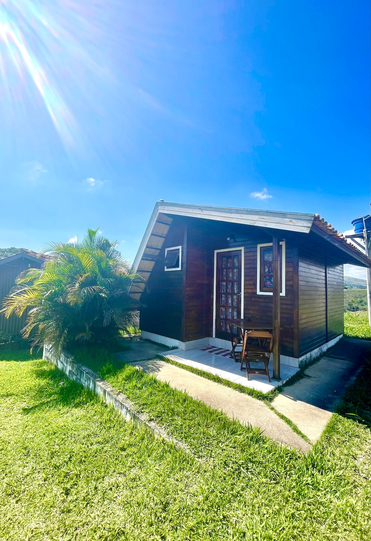Sealla adhmaid teolaí 2 sheomra leapa (1 svuít), oiriúnach do lánúineacha agus do theaghlaigh bheaga. Rochtain éasca ar sheirbhísí, gníomhaireacht fáiltithe Tamanduá Ecotourism agus na príomhnithe is díol spéise sa Serra da Canastra: Páirc Náisiúnta, foinse Abhainn São Francisco, RPPN de Cachoeira do Cerradão agus feirmeacha cáise canastra.