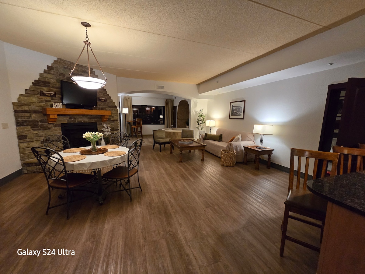 Bring your family or friends to this lovely condo where you can enjoy a classic Wisconsin Dells experience. Everything is available at your fingertips, including restaurants & bars, golfing, spa, and of course Wisconsin Dells waterparks, and more! (Chula Vista waterpark passes not included with your booking) This top floor condo is spacious, private, and has everything for your group to relax. Enjoy sunset views over the Wisconsin River, or head down to one of the complimentary outdoor pools!