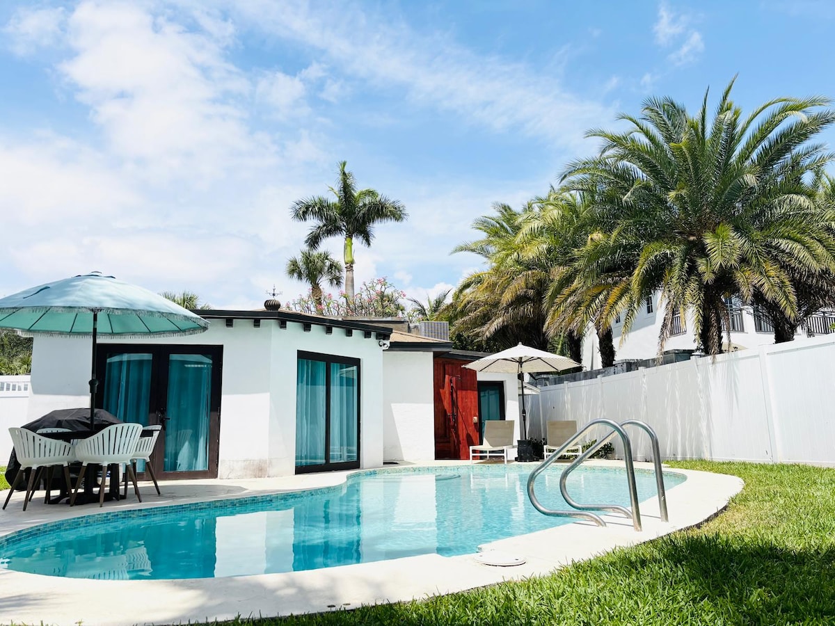 Fáilte go dtí Comhrá Saor in AISCE CASA DÉJÀ VU Spás ardleibhéil a cruthaíodh go tuisceanach duitse amháin, i gcroílár Fort Lauderdale. ✔️ 8 nóiméad go dtí an trá | 10 nóiméad go Las Olas Linn snámha sáile ✔️ théite + tobán te lasmuigh ✔️ Gairdín le gazebo, beárbaiciú & tolgairí ✔️ 2 leaba (King + Queen), Wi - Fi tapa Cistin ✔️ lánfheistithe + Teilifíseáin Chliste Rothair ✔️ saor in aisce & fearas trá ✔️ Comharsanacht chiúin shábháilte ✔️ Páirceáil saor in aisce + óstaigh 24/7