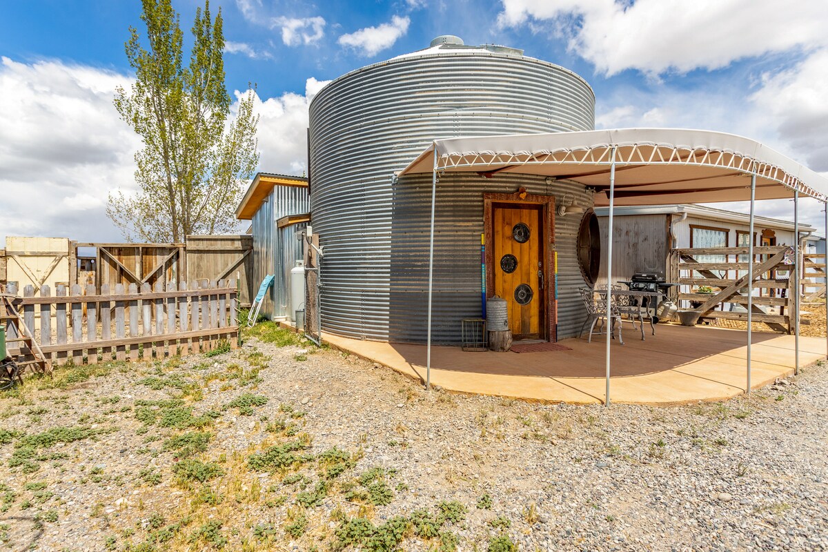Fáilte chuig an Teach Cruinn! Tá gach rud a theastaíonn uait le bheith ar do shuaimhneas sa silo gráin uathúil seo. Tá an seomra leapa thuas staighre. Is geata é Delta chuig Fána Thiar Colorado. Tá Grand Mesa, Séadchomhartha Náisiúnta Black Canyon agus cinn scríbe iomadúla lasmuigh laistigh d'achar gearr. Inis dom, le do thoil, má tá tú ag taisteal le madra nuair a dhéanann tú áirithint. Tá táille $ 30 IN AGHAIDH AN mhadra ann. Níl Cait ann, le do thoil. Má tá d'fhanacht níos faide ná 14 lá beidh táille bhreise ghlantacháin dhomhain ann.