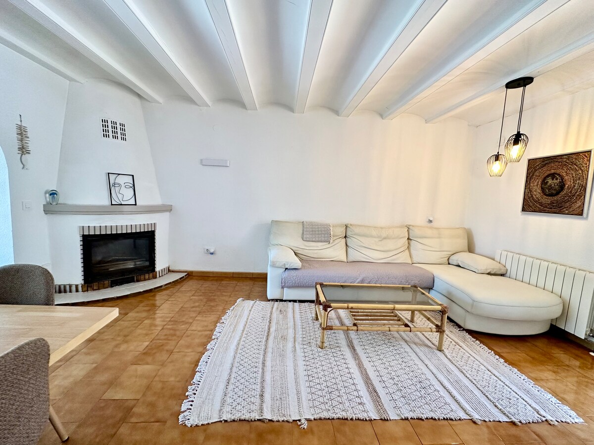 Teach baile mór athchóirithe go hiomlán sa stíl nua - aimseartha ach cúpla méadar ón trá ghainmheach, bialanna, siopaí caife agus 900 méadar ó shráidbhaile Moraira. Radharc ar an bhfarraige, linn snámha chomhchoiteann, snáithín Idirlín, aerchóiriú i ngach seomra, muiscítí, Teilifís Chliste, miasniteoir agus meaisín níocháin. Ardán mór príobháideach le beárbaiciú gáis, bord, cathaoireacha agus scáth fearthainne. Tá spás páirceála príobháideach ann in áitreabh an phobail. Óstach aireach agus tromchúiseach le labhairt na Spáinnise.