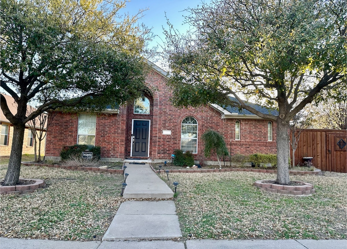 Classy guest suite in the heart of Carrollton. Perfect for a couple or fam. of 3. Newly refurbished: Entire bedroom with queen size bed, full bathroom with walking shower, jacuzzi and elegant double vanity; full kitchen with new appliances. Complete independent entrance with a front door and a private patio, all just for yourself. Located in a very secure and family friendly neighborhood, 25 minutes to Love Field Airport and 15 minutes the DFW Airport.