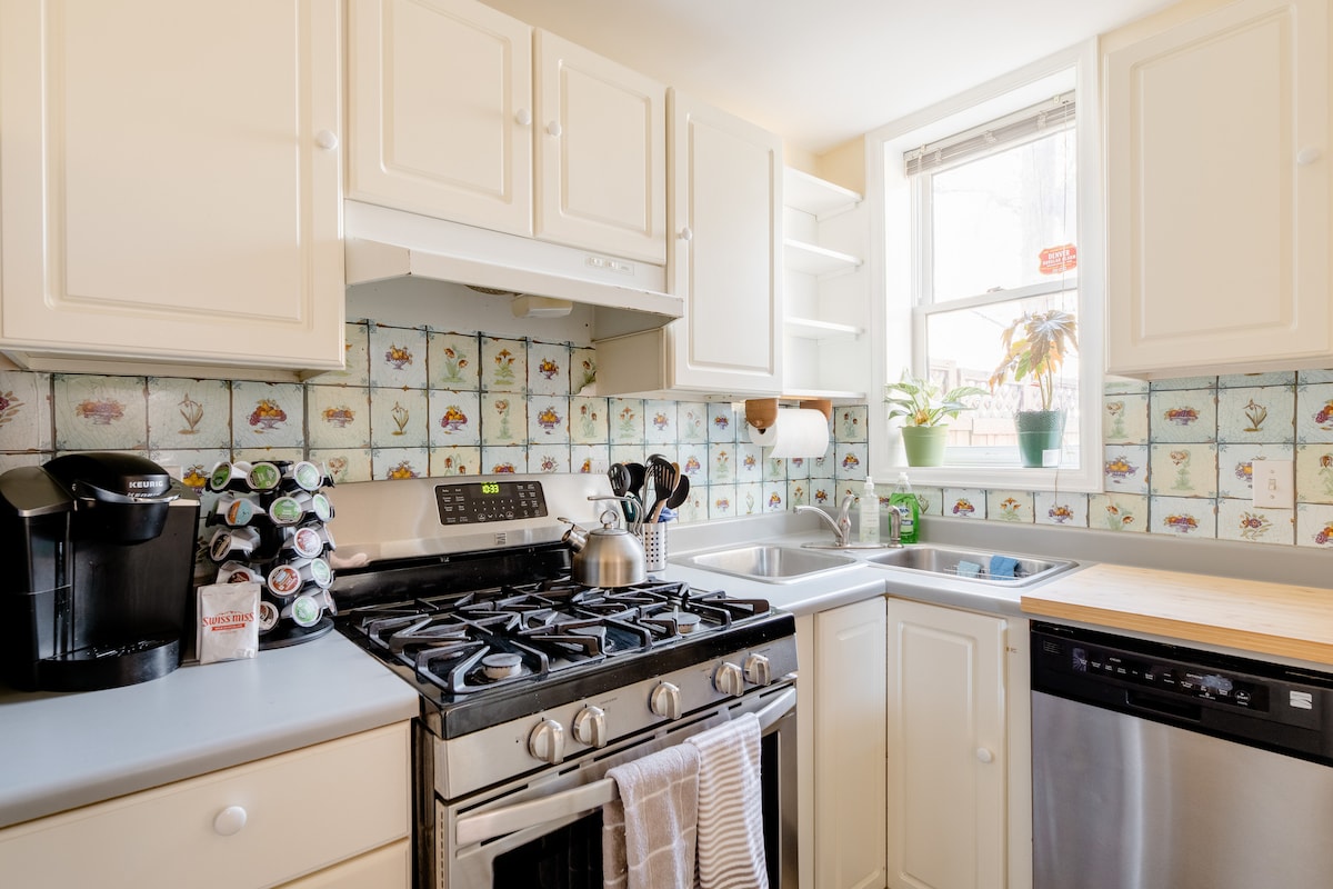 Gan TÁILLE GHLANTACHÁIN! Tosaigh do lá sa chithfholcadán mór tílithe; ansin téigh suas ar ríomhphoist ag an deasc oibre áisiúil. Nochtann an teach seo pleanáil chúramach do bheirt, atá curtha ar taispeáint ag cistinéad dearthóra, meaisín níocháin/triomadóir, teilifís chliste le cábla, deasc/spás oibre, agus Wi - Fi an - tapa. Beidh do bhealach isteach príobháideach féin agat chuig an árasán seo atá athchóirithe go hiomlán. Agus táimid gar do gach rud: tá siopa grósaera branda Whole Foods díreach timpeall an chúinne, bialanna, beáir agus Páirc Cheesman gar. Páirceáil sráide saor in aisce.