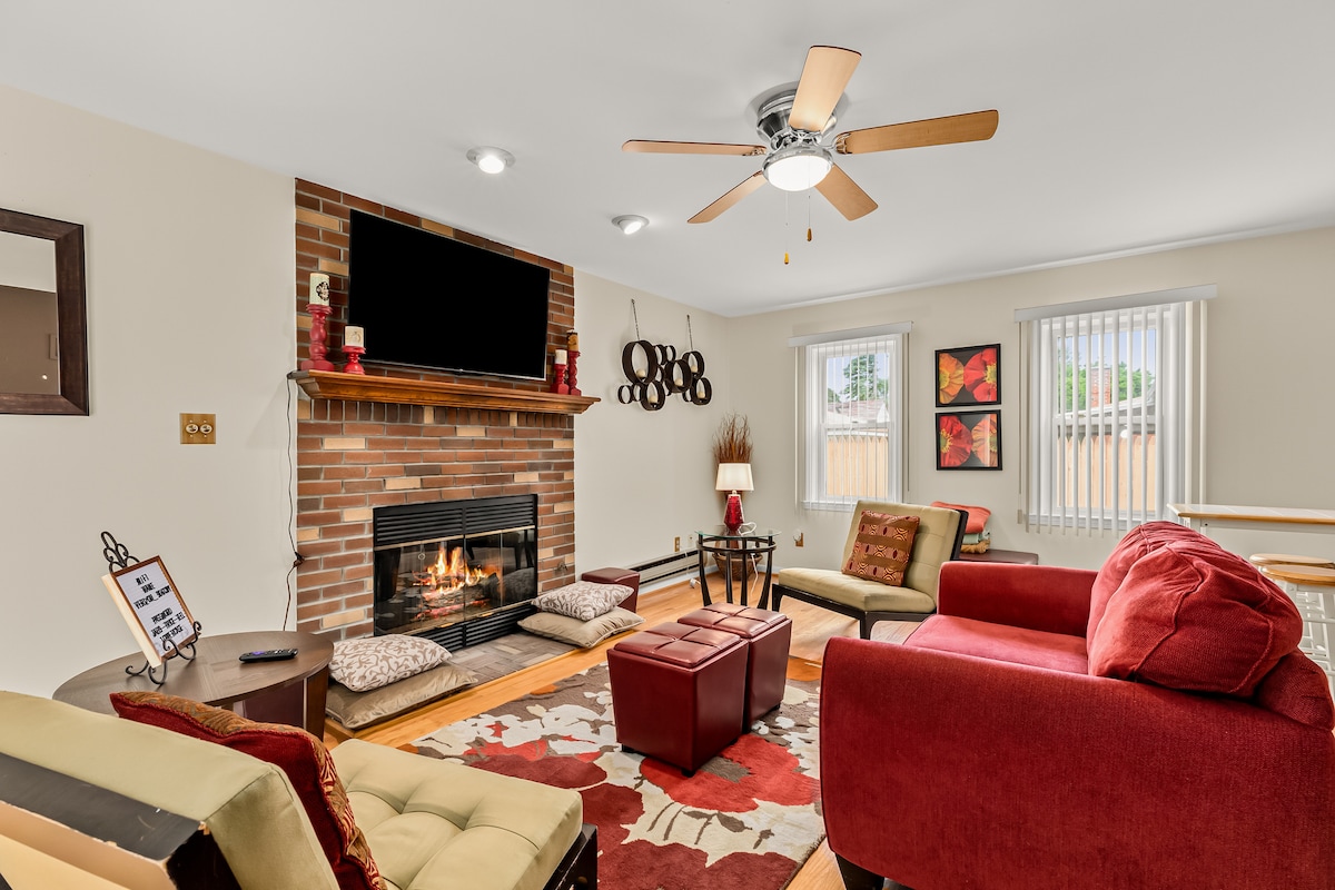 A Detroit Core City Beauty. PS Grand Getaways 2ú Suíomh. Foirfe DO dhaoine A BHFUIL DÚIL ACU I LÁR NA cathrach, (5 nóiméad AR shiúl) NÍ TEACH CÓISIRE É seo. (10 NDUINE AMHÁIN) Lig halla ar cíos más gá. Áit iontach do lánúineacha LÁNFHÁSTA AMHÁIN, nó do chairde chun teacht le chéile ar a suaimhneas. Lig do scíth sa tobán te paitió cúil, fuaraigh cois an phoill dóiteáin agus tú ag beárbaiciú nó ag cócaireacht sa Chistin shómasach álainn! Bí ar do shuaimhneas sa seomra cluiche íoslaigh! Athnuaigh inár mbeirt cithfholcadáin shómasacha, nó bí ar ais inár seomra suí le haghaidh oíche scannáin!