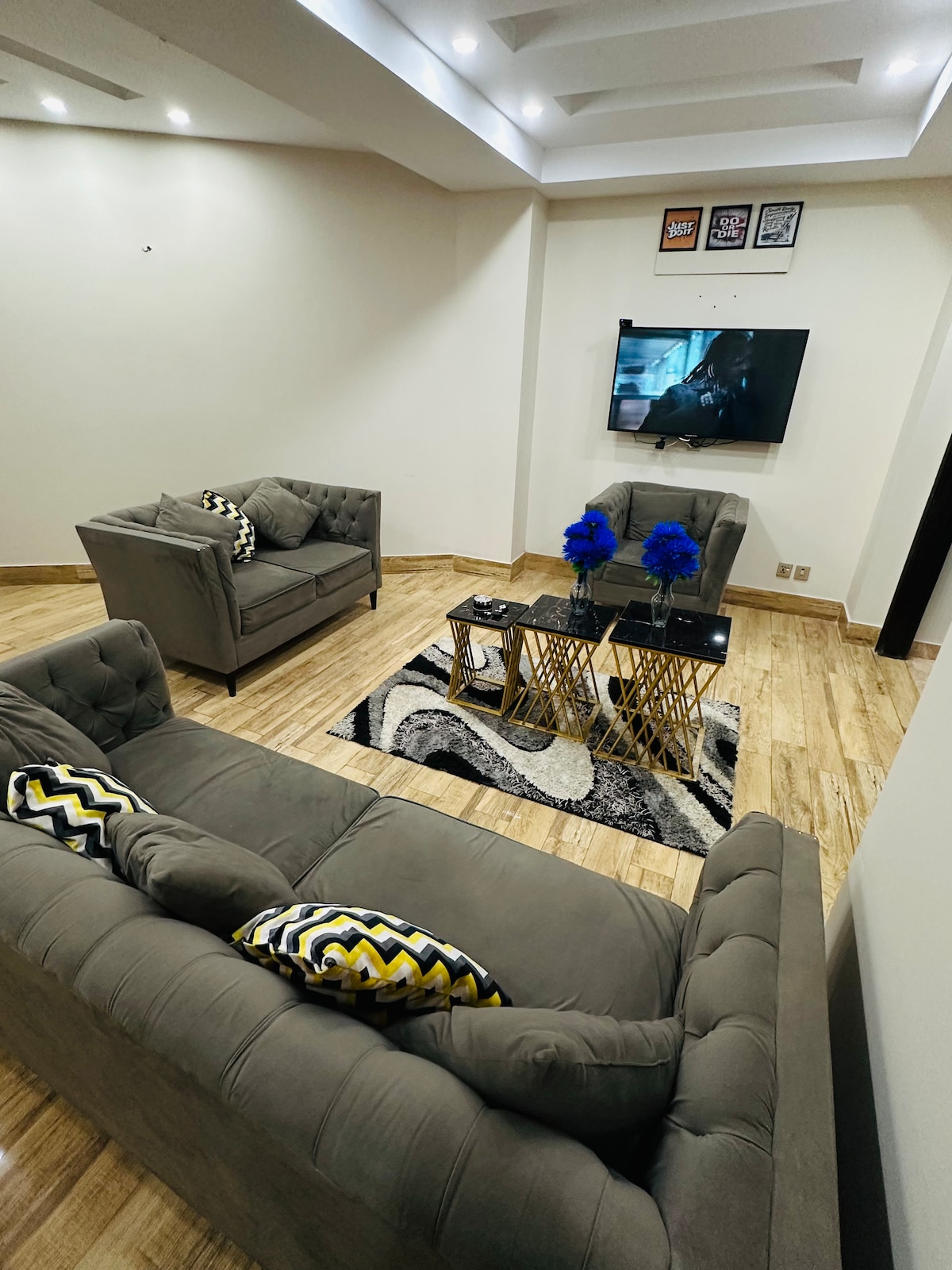 Fáilte go dtí mo shvuít shómasach suite OISRÍ SUITE CÓNAITHEACHTAÍ SÓ CÚIRT ar cheann de na foirgnimh is sómasaí de lahore sa chuid is mó atá ag tarlú i gceantar gulberg 2 díreach in aice le bóthar MM ar shiúlóid áit a bhfaighidh tú saoráidí sómasacha. Níl ach 2 nóiméad sa charr chuig gach bialann cháiliúil agus brandaí agus malls siopadóireachta ! 10 go 13 km ón aerfort Idirnáisiúnta. Is féidir leat taitneamh a bhaint as siopa caife den scoth san fhoirgneamh agus freisin is féidir leat taitneamh a bhaint as linn snámha tobán te agus jym le do theaghlach :)