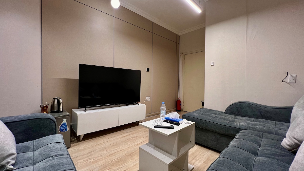 Bain sult as d'fhanacht san árasán stiúideo galánta fairsing seo, atá deartha le rudaí beaga nua - aimseartha agus compord teolaí. Tá na gnéithe seo a leanas sa spás: • Leaba bhanríona • Teilifís Chliste • Suíocháin chompordacha • Seomra folctha — iad ar fad in aon leagan amach oscailte, aerach amháin. 📍 Príomhshuíomh: • Siúlóid 10 nóiméad go Ajdan/ Corniche • 6 nóiméad go dtí Meall Dhahran • 10 nóiméad chuig Aramco & KFUPM • 10 nóiméad go dtí an Tóchar i mBairéin • Níl ach siúlóid 2 nóiméad go Flamingo Mall Foirfe do thaistealaithe gnó nó do lánúineacha atá ag lorg fanacht suaimhneach, dea - nasctha in Al Khobar.