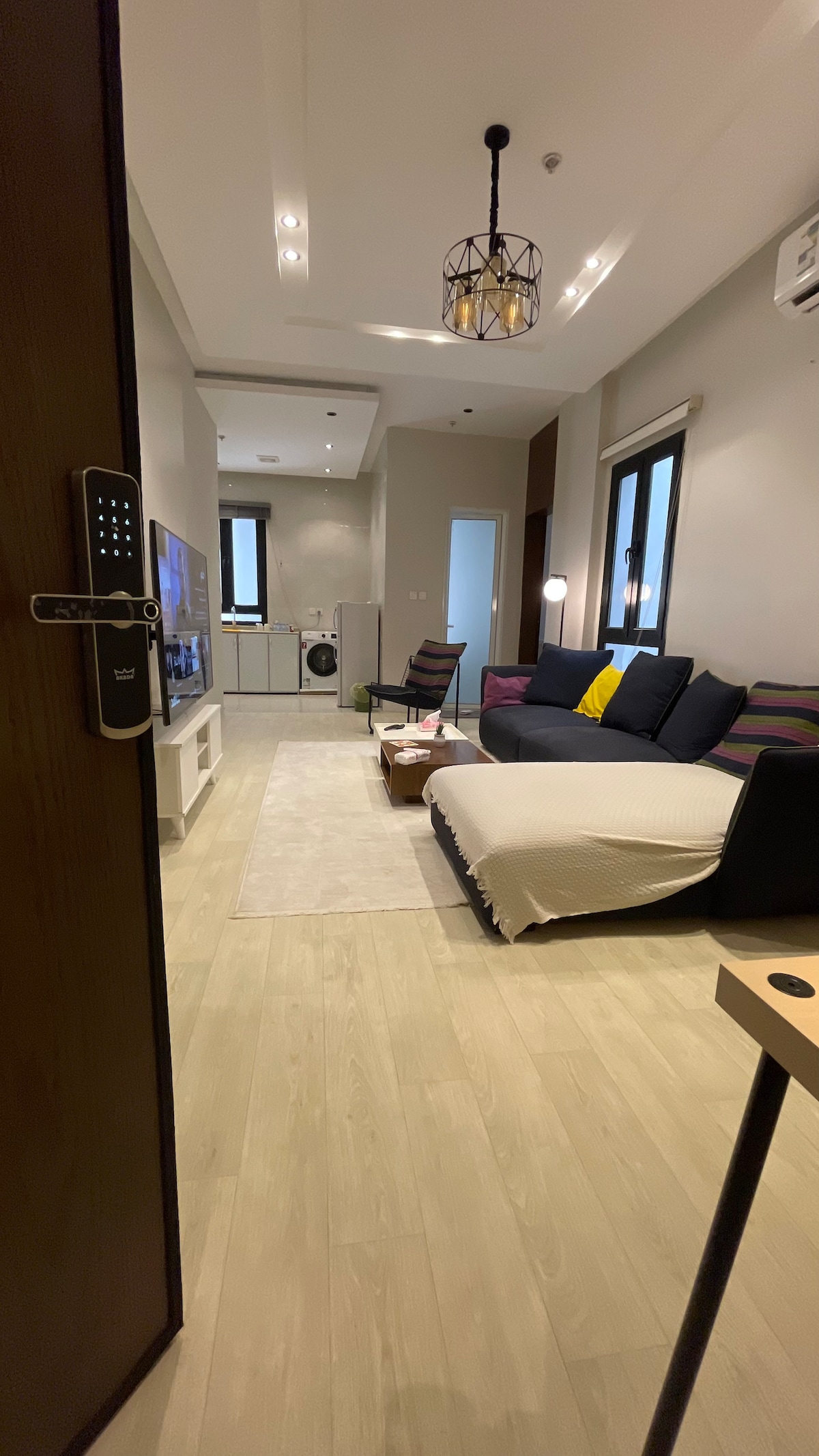 Fáilte Is árasán é an áit ina bhfuil seomra (leaba rí) + 2 sheomra folctha + halla faoi dhíon + cistin atá oscailte don halla bia. Tá na seirbhísí seo a leanas feistithe san áit: féinseiceáil isteach/Wi - Fi 5G/tuáillí glana/iarann/scáileán teilifíse 65 orlach/páirceáil phríobháideach saor in aisce san íoslach/ardaitheoir/láithreacht oibrí chun cabhrú leat i gcás fadhb ar bith. Is é an ghné is sainiúla den áit ná go bhfuil sé suite i gcroílár Al - Khobar, 6 nóiméad siúil ón Al - Khobar Corniche, go sonrach ag crosbhealach na sráideanna is mó éilimh (Sráid an Rí Salman agus Sráid an Phrionsa Turki), atá lán le bialanna, caiféanna agus siopaí