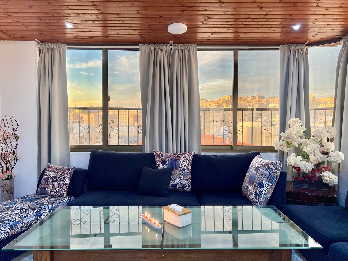 Seomra teolaí le díon príobháideach, árasán stiúideo seomra leapa amháin le radharc glamorous ag breathnú amach ar an gcathair agus ar lár Amman. Téarmaí agus Coinníollacha Bunúsacha: 1 - Tá an t - aoi freagrach as a chinntiú go bhfágfar an lóistín sa riocht céanna agus a bhí sé ar an tseiceáil isteach 2 - Príomhthreoracha fillte - má tá eitilt luath agat cuir téacs chugam agus fág na heochracha taobh istigh 3 - Cúitigh aon earraí atá briste, damáistithe nó ar iarraidh san árasán nó ar an díon