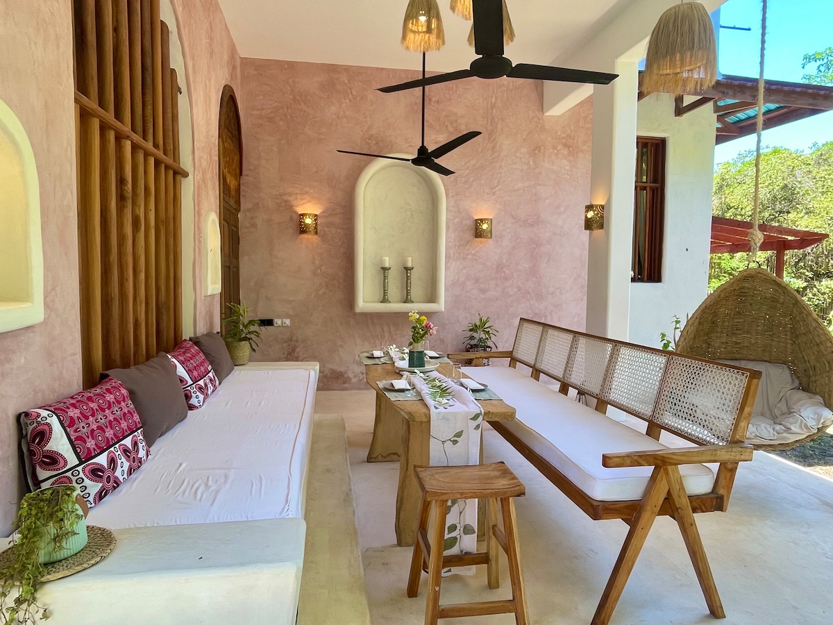 Tá an villa galánta seo oiriúnach do thurais ghrúpa, cibé acu le cairde nó le do theaghlach. Le trí sheomra leapa, cuireann an villa spásanna maireachtála oscailte nua - aimseartha ar fáil atá maisithe le décor Svahaílis agus troscán a fhaightear ó cheardaithe áitiúla. Lonnaithe ach tiomáint gearr 5 nóiméad go dtí an trá agus tiomáint 7 nóiméad go dtí siopaí agus bialanna, cuireann sé idir áisiúlacht agus charm ar fáil. Déan iniúchadh ar do pharthas trópaiceach príobháideach féin.